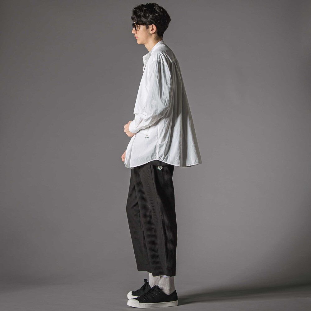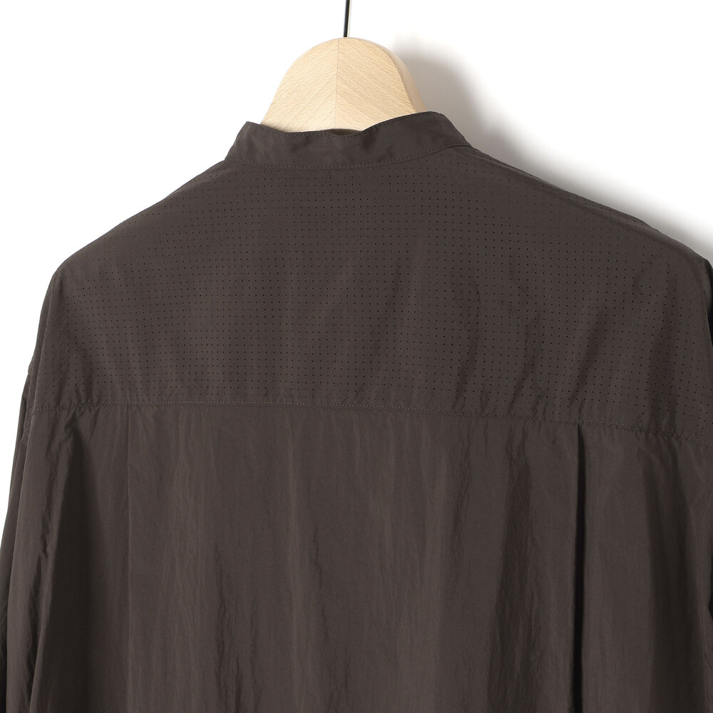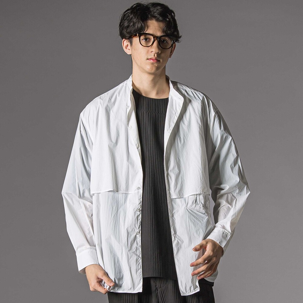 ナイロンタフタ生地を使用したシャツは、軽量でさらりとした質感が特徴。