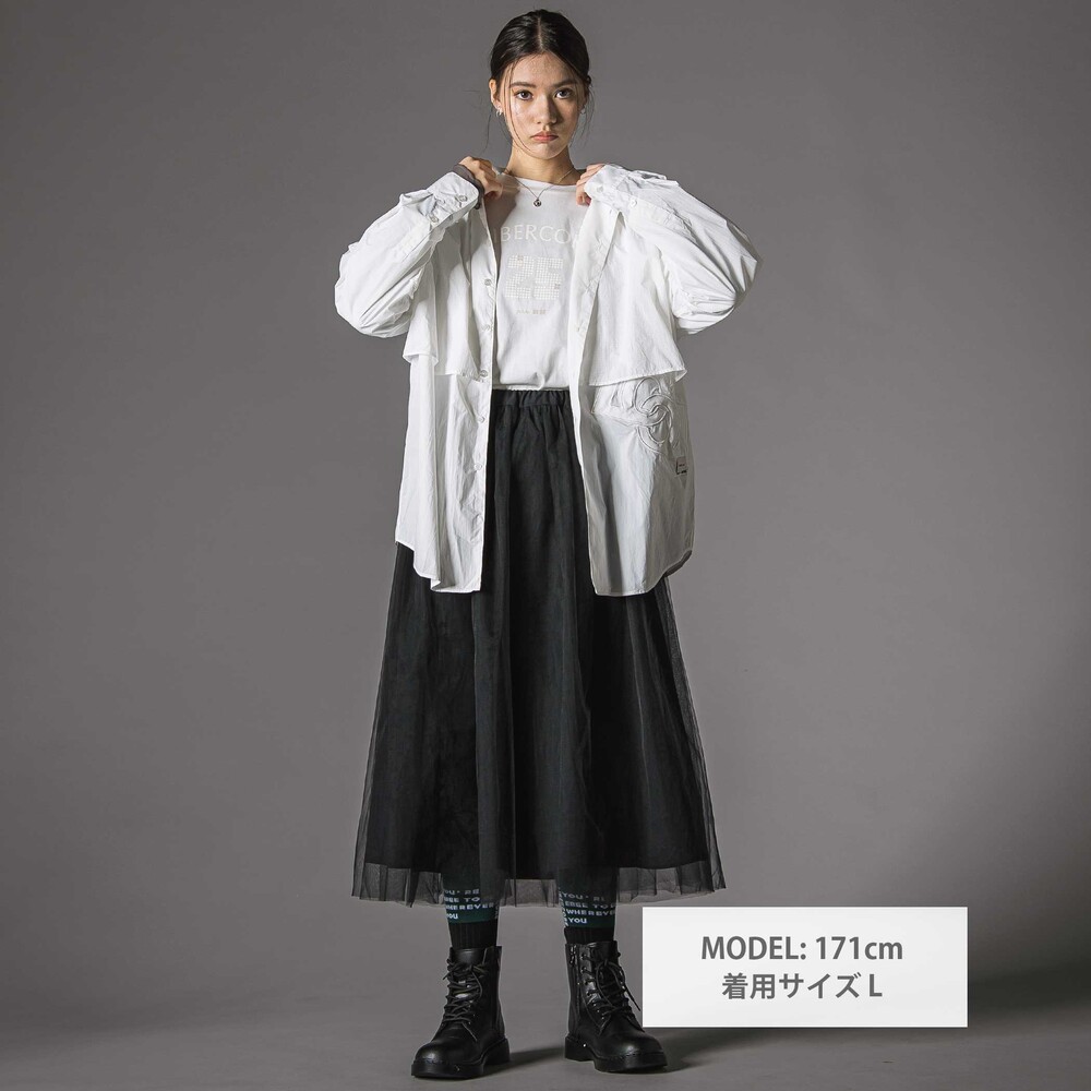 前ボタンタイプなので、Tシャツの上にさっと羽織るだけでコーディネートが完成します。