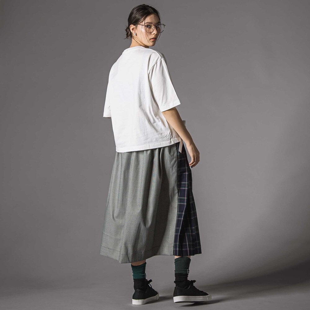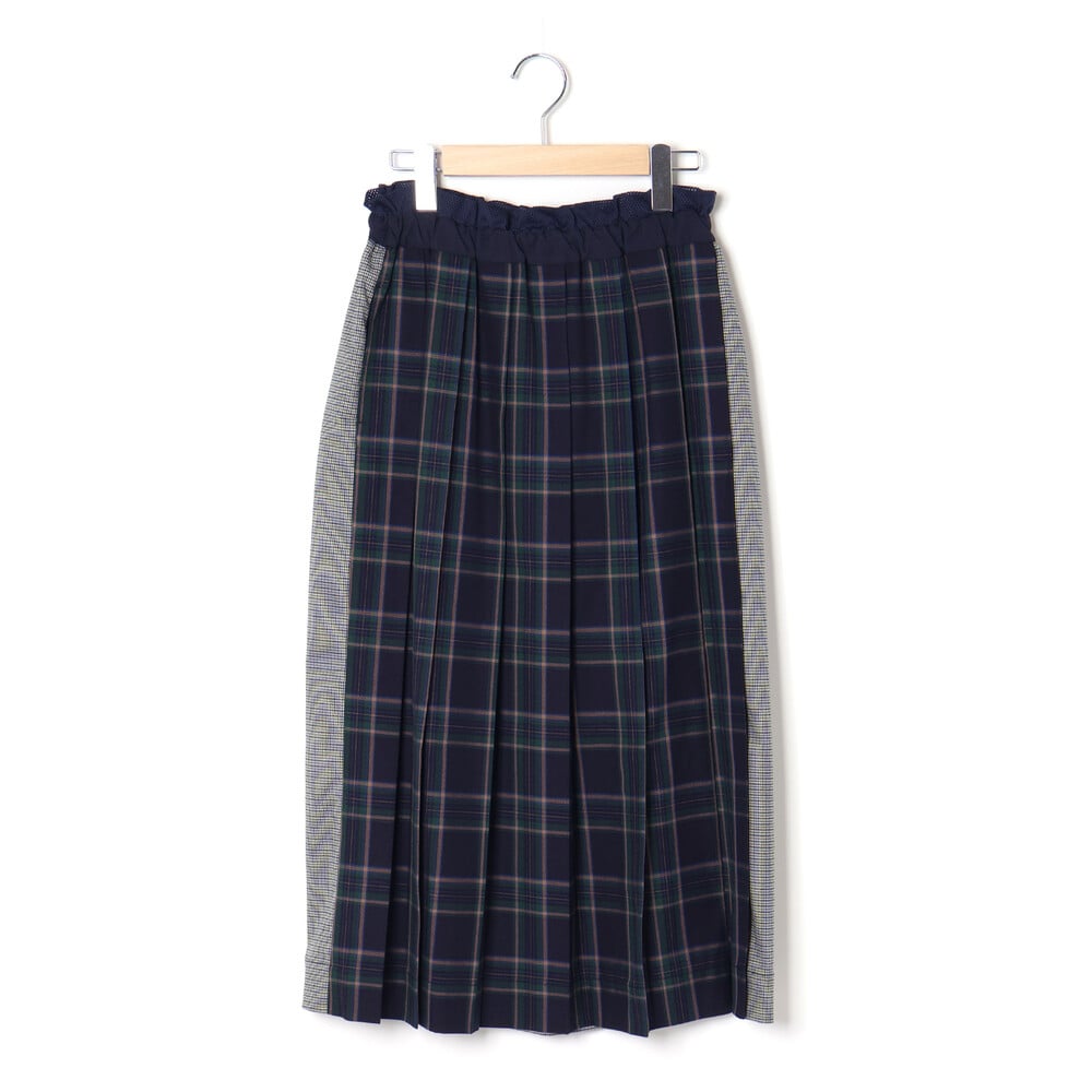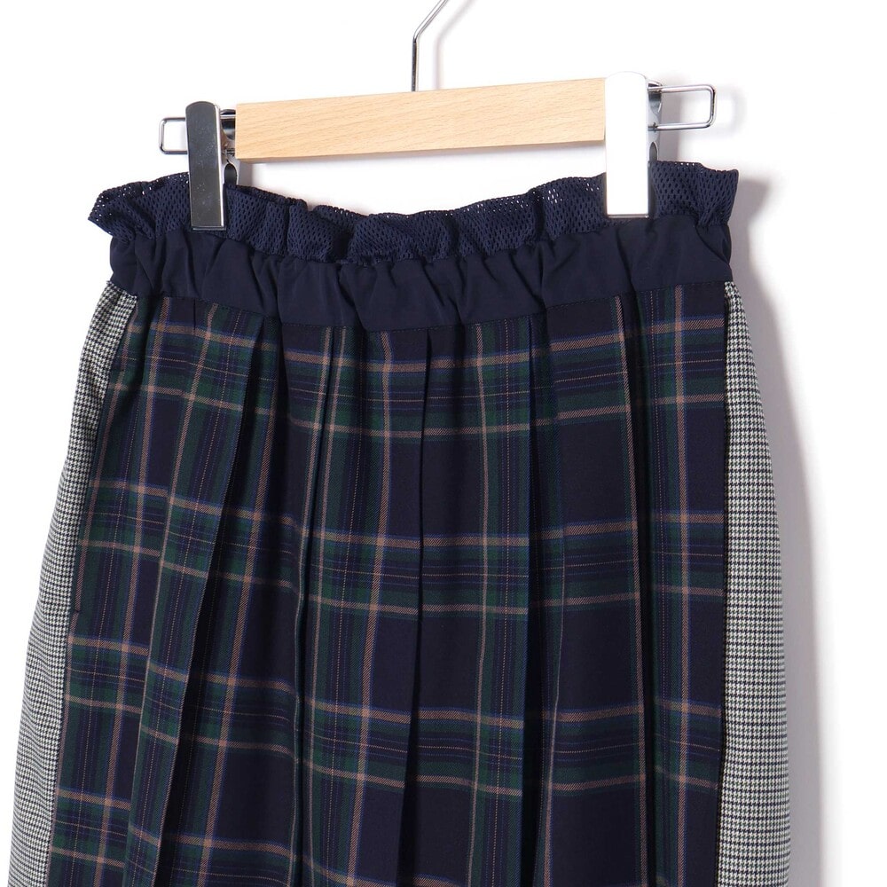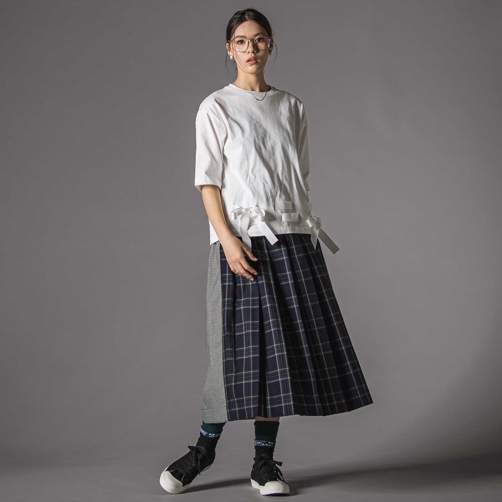 スカートのチェックと無地の切り替えが目を惹くスカート。