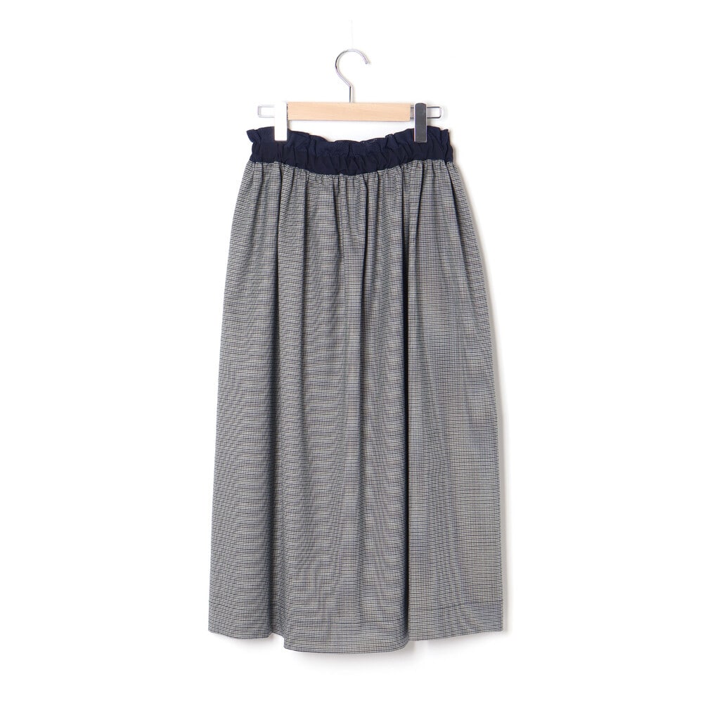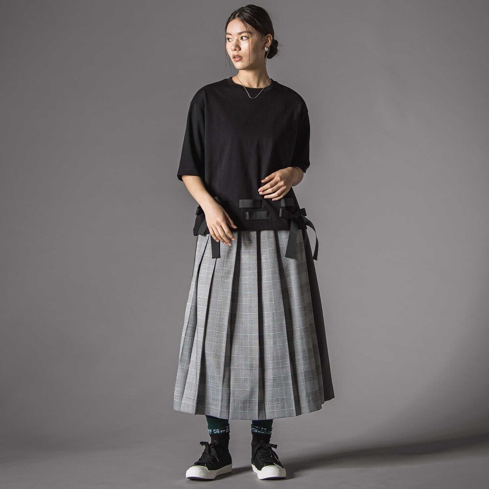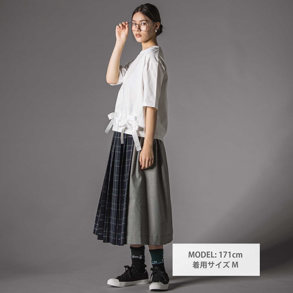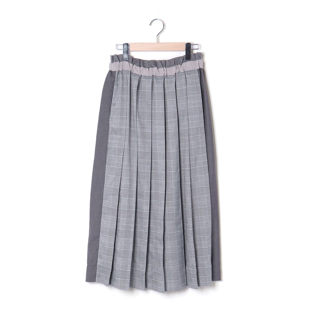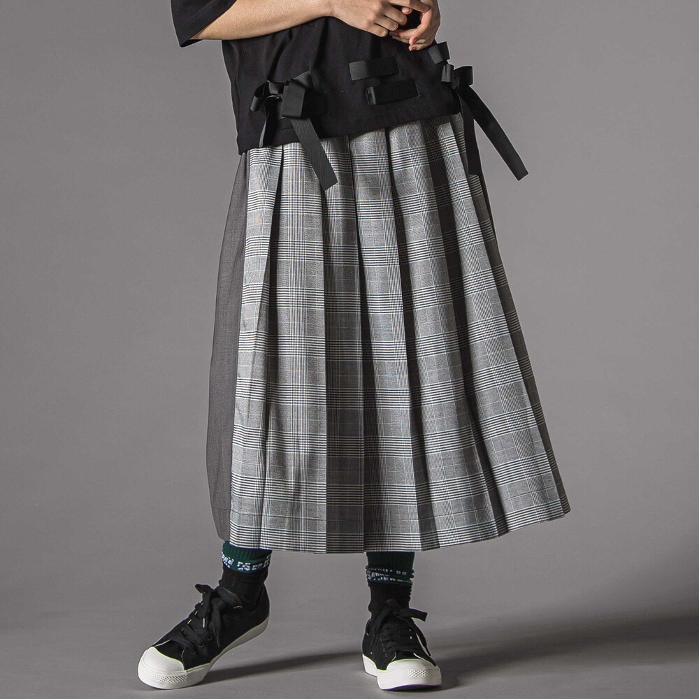 スカートのチェックと無地の切り替えが目を惹くスカート。
