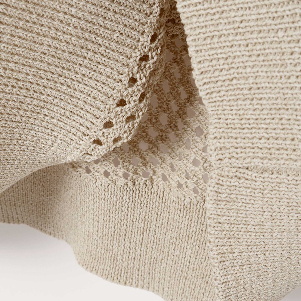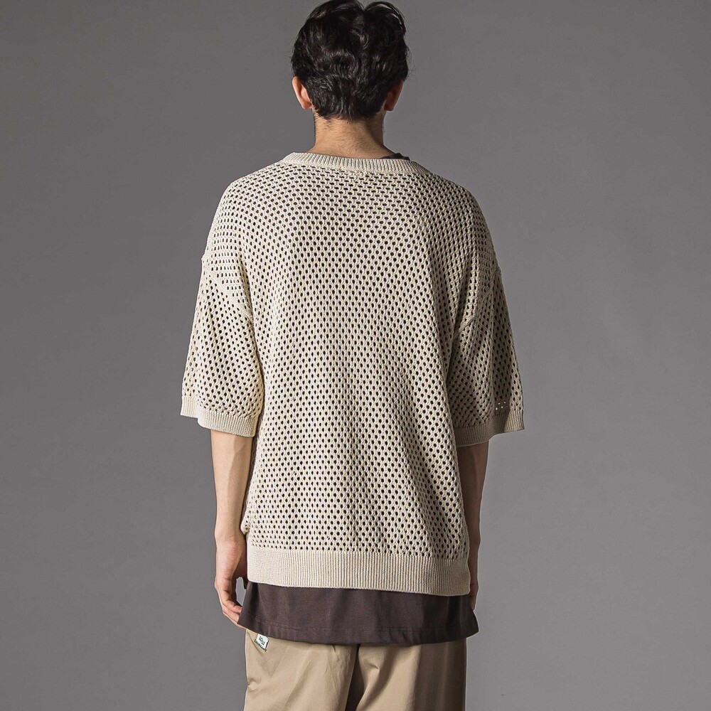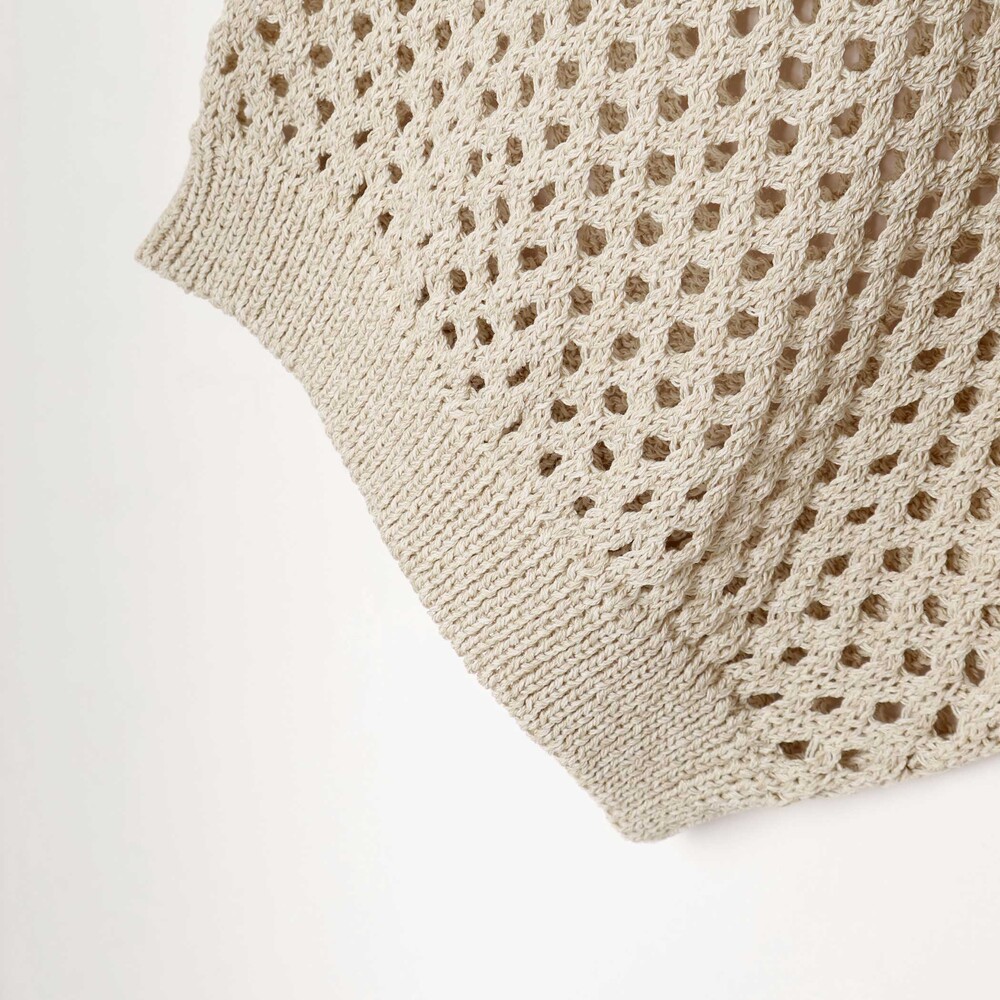 レーヨン混のソフトな糸で編み上げたメッシュ編みのニット。