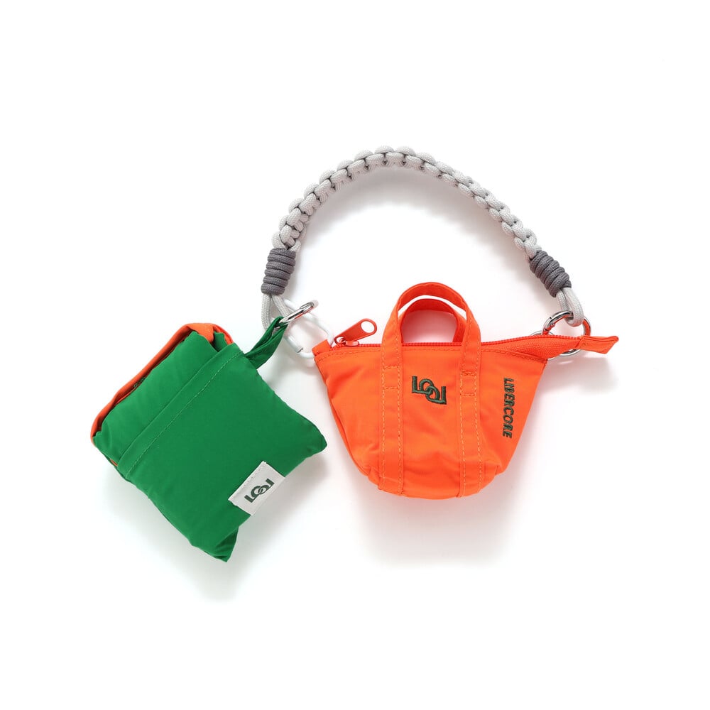 ブラック系はブラックのミニバッグにチャコールグレーのエコバッグ、ベージュ系はイエローベージュのミニバッグにコバルトブルーのエコバッグ、オレンジ系はオレンジのミニバッグにメイグリーンのエコバッグを組み合わせの3色展開。