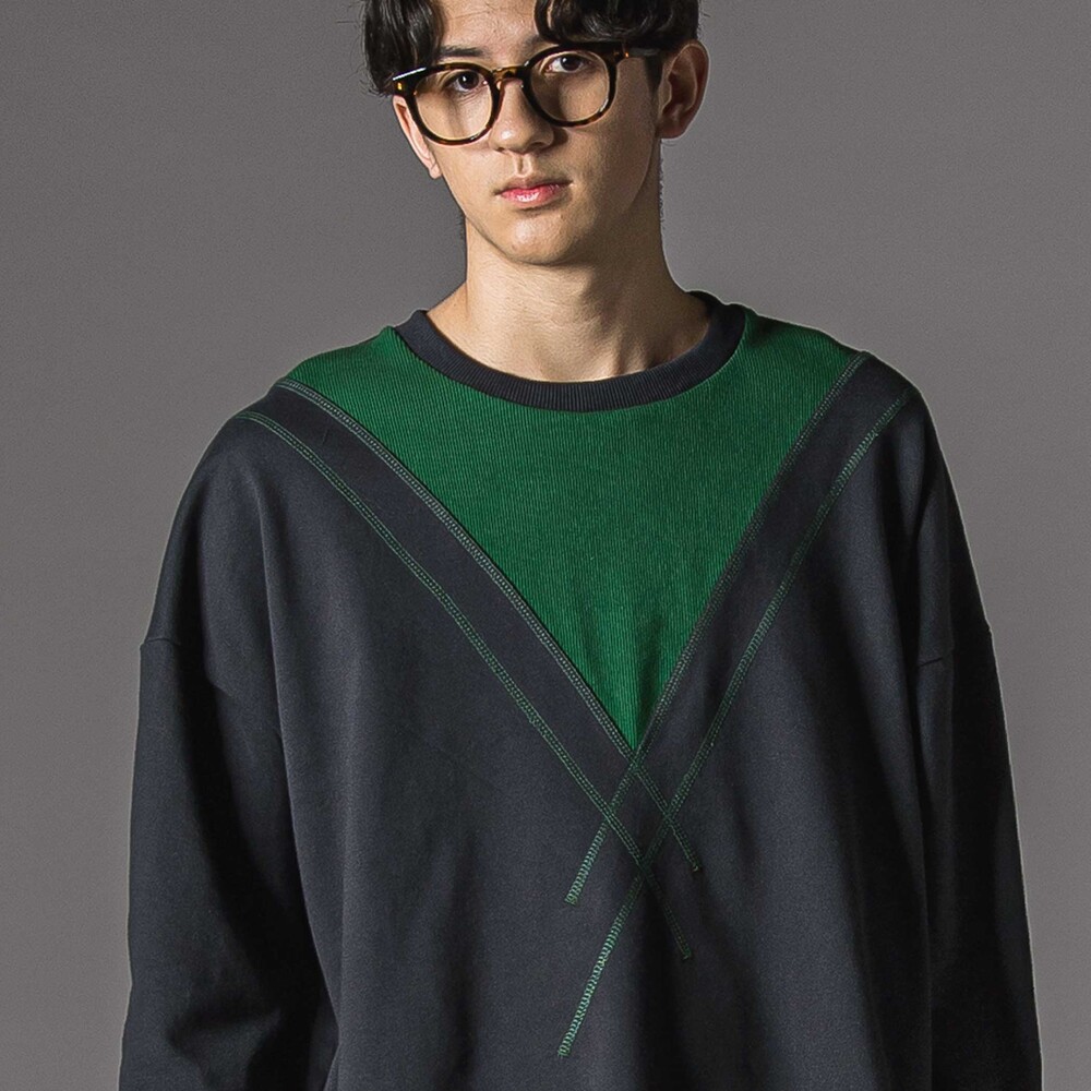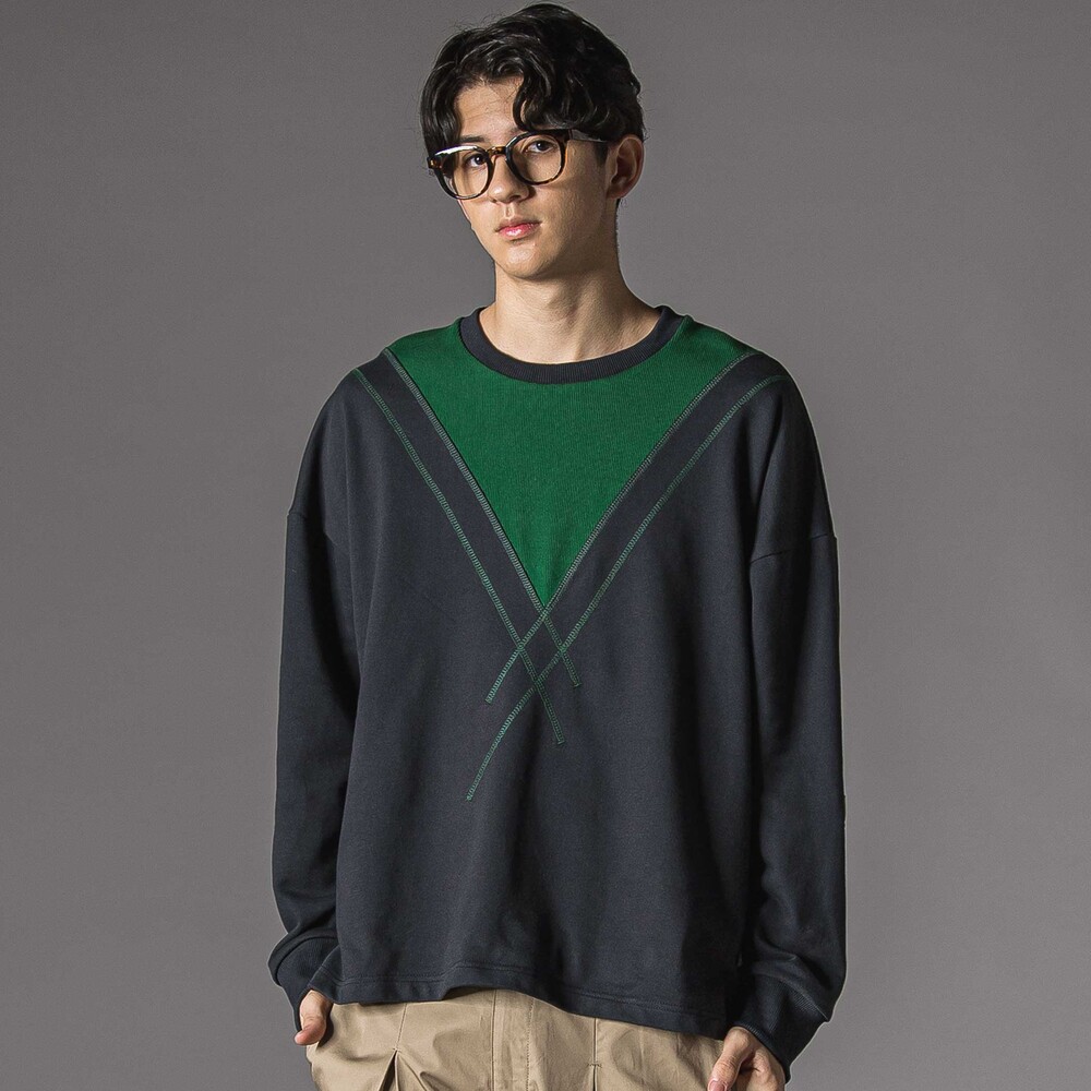 首周りのガゼット部分はV字の配色とカラーステッチがアクセントになっており、個性が光ります。