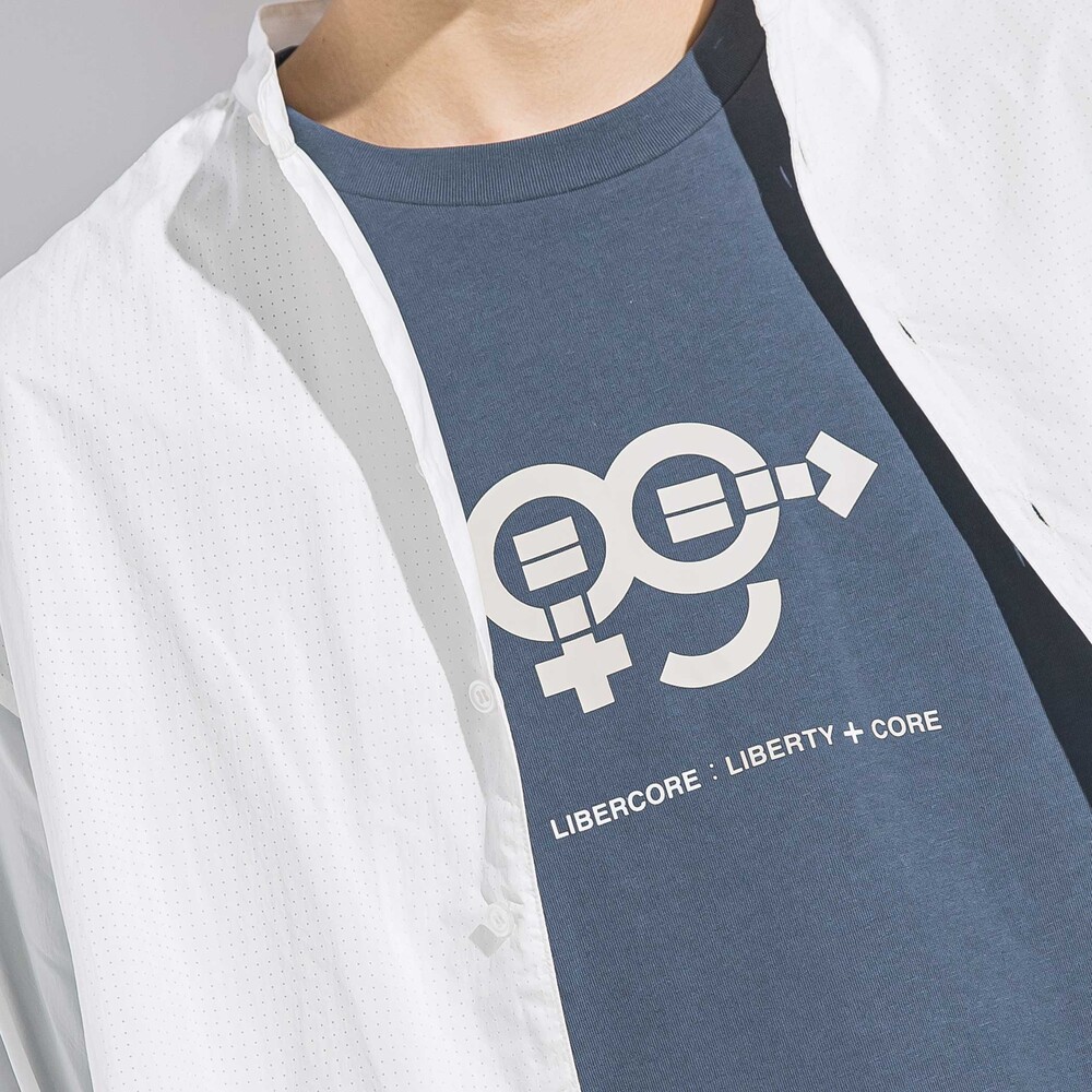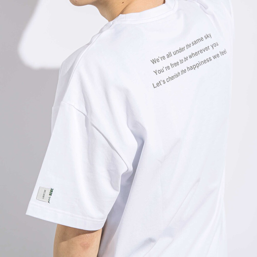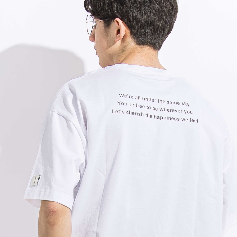 胸にはブランドコンセプトマーク、背中にはメッセージロゴをプリント。