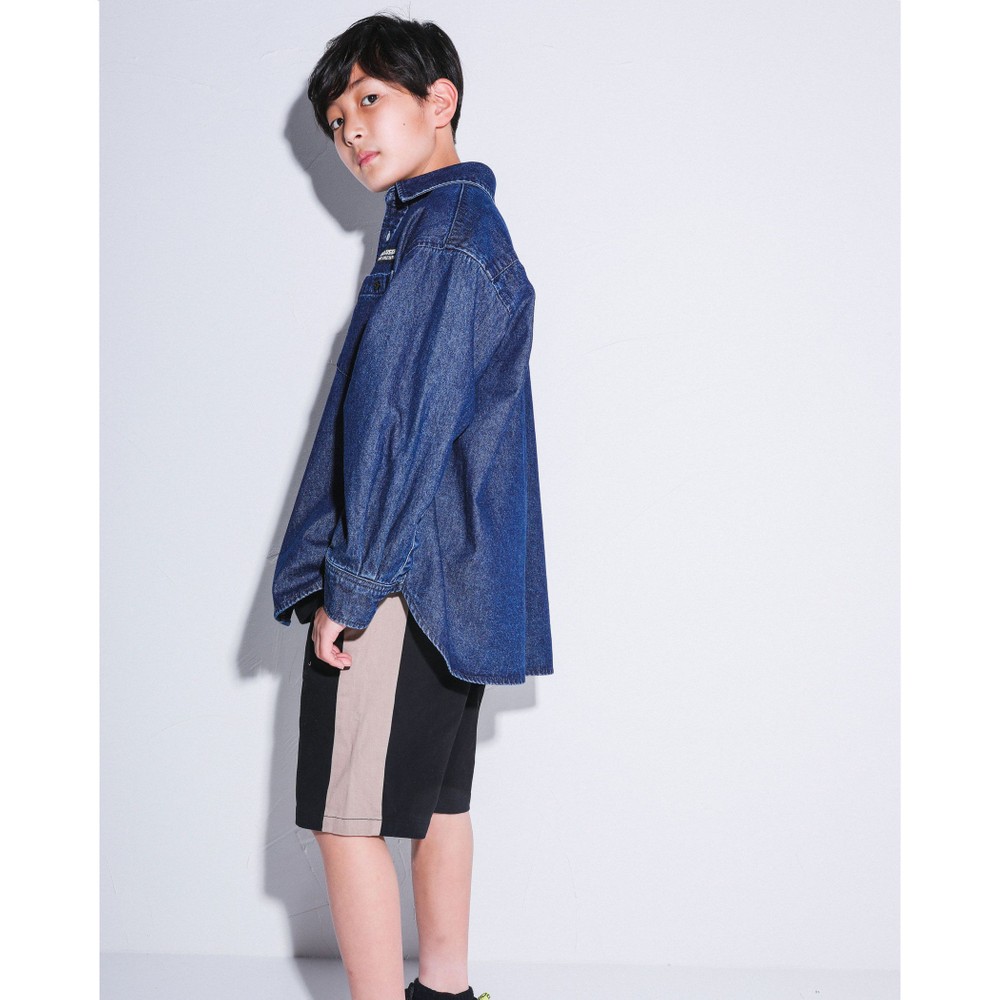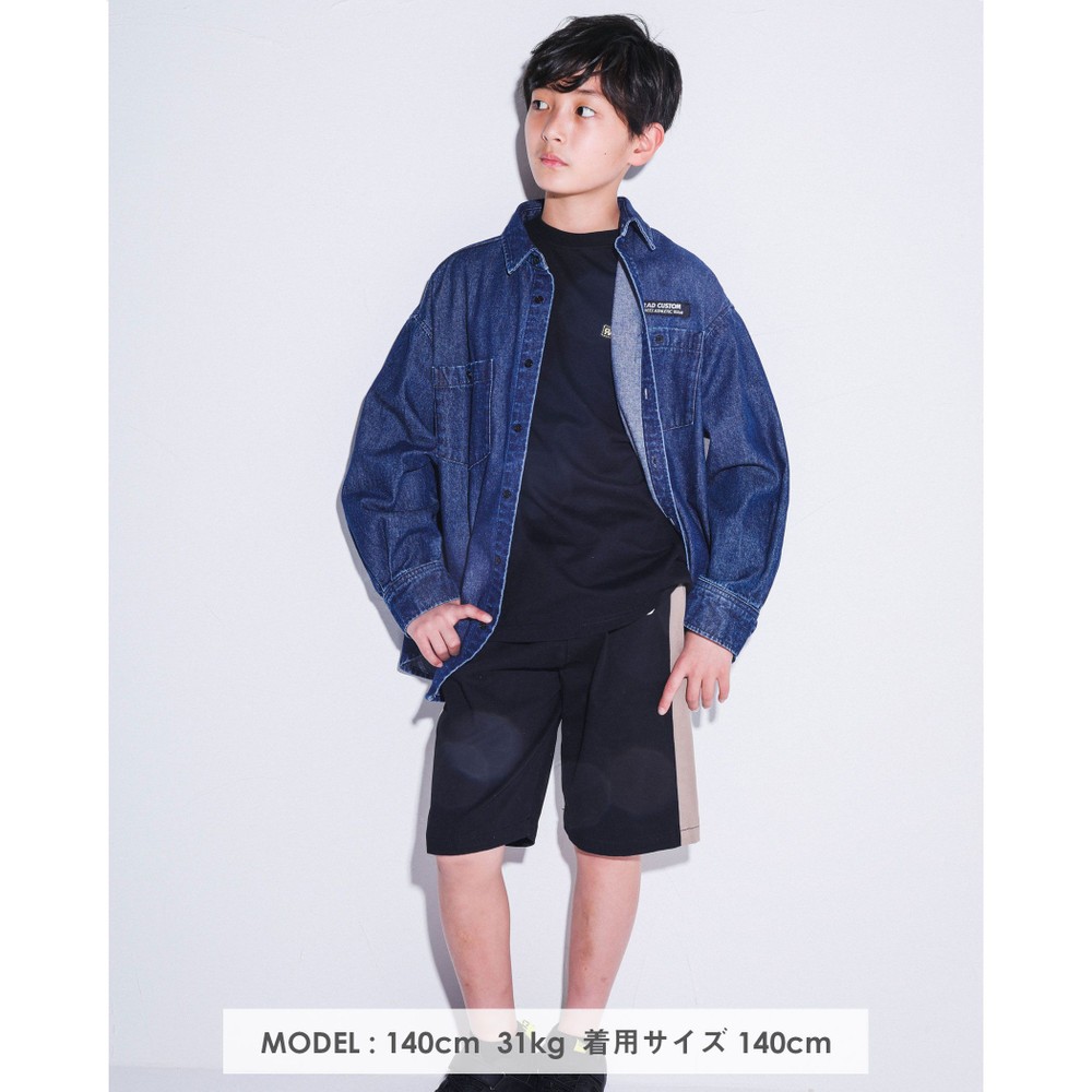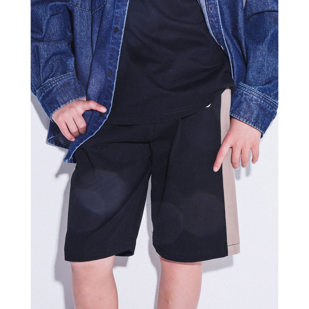 サイドが切り替えられた、ラインデザインの男の子用ハーフパンツ。