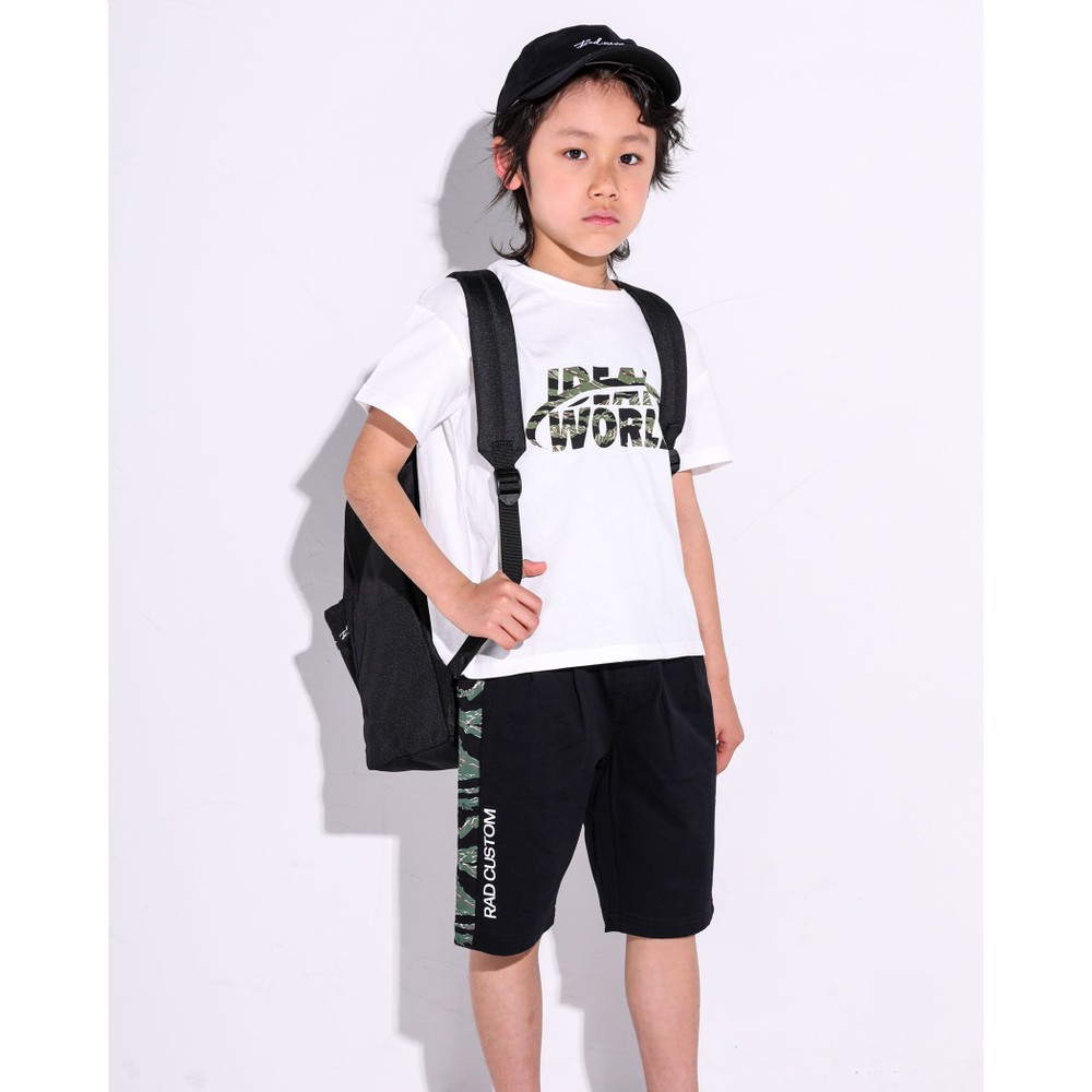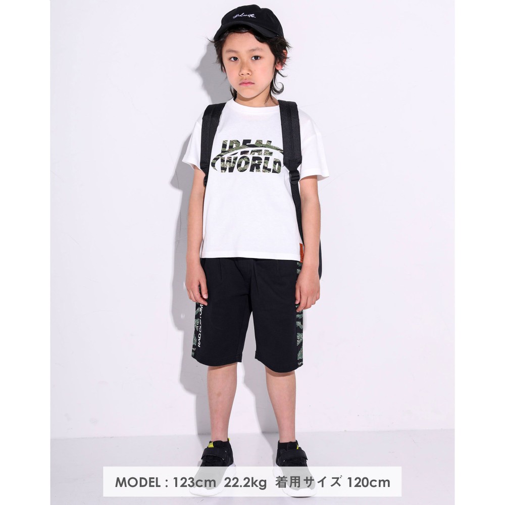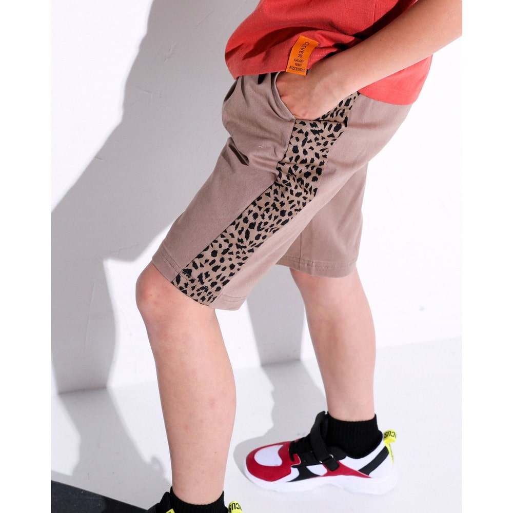 サイドをアニマル柄で切り替えた、コーディネートのポイントになるハーフパンツ。