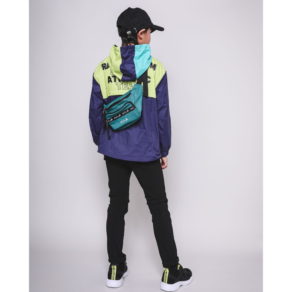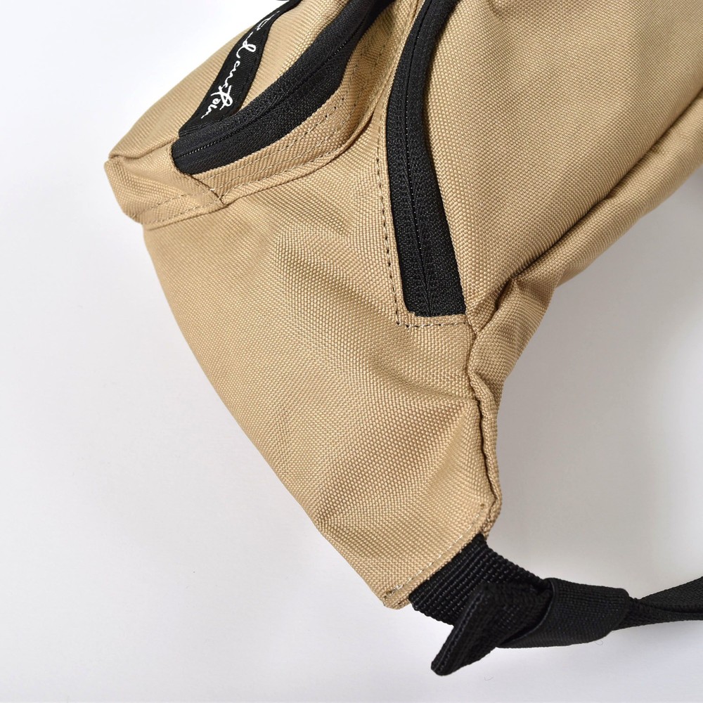 ポリエステル100%で軽く、持ち運びに便利なウエストポーチ。