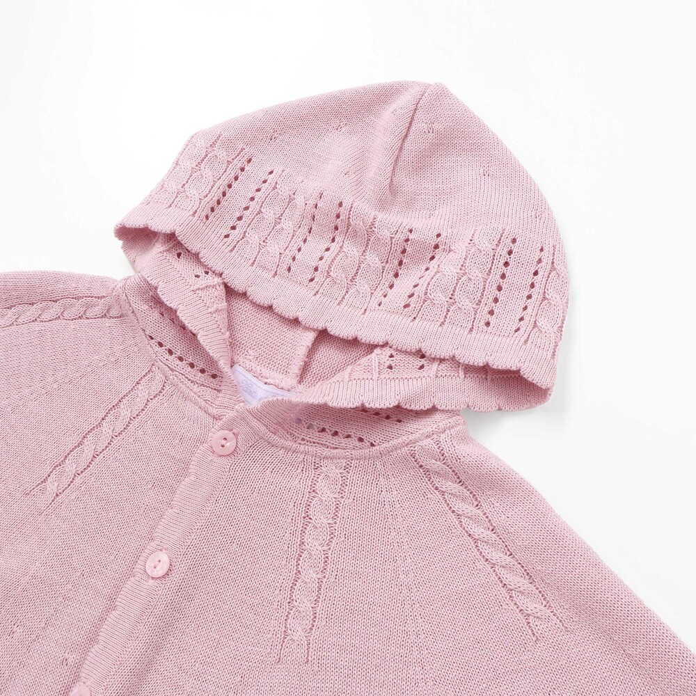 柔らかい風合いの綿アクリル糸を使用したベビー用セーターマント。