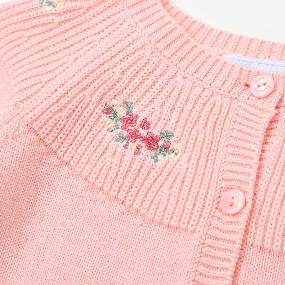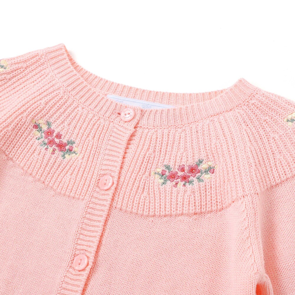 アクリルファイバーと綿を混紡した生地に刺しゅうを施した女の子用カーディガン。