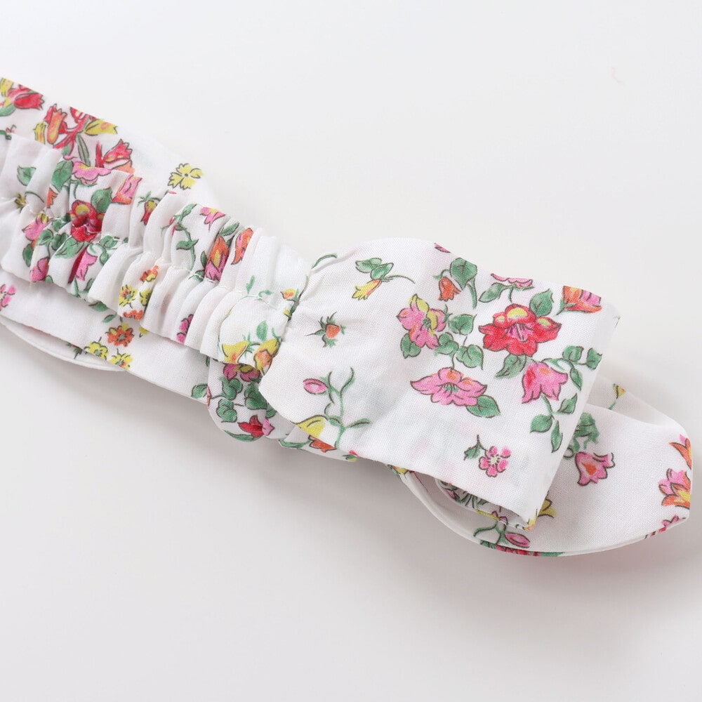 大きめリボンと小花柄のリバティ(BluebellFields)柄がマッチしてプラスワンでコーデの主役に。
