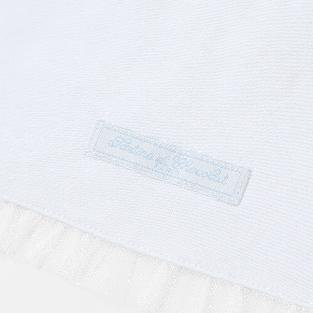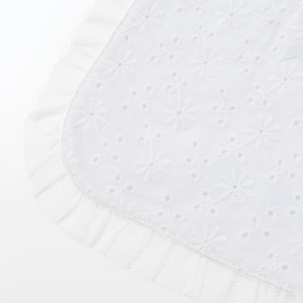 スタイの縁にレースとチュールがあしらわれた品のあるデザインです。