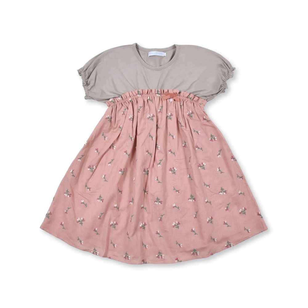夏らしく爽やかな風合いのボイルガーゼ素材にオリジナルの花刺繍を施した切替デザインのワンピース。