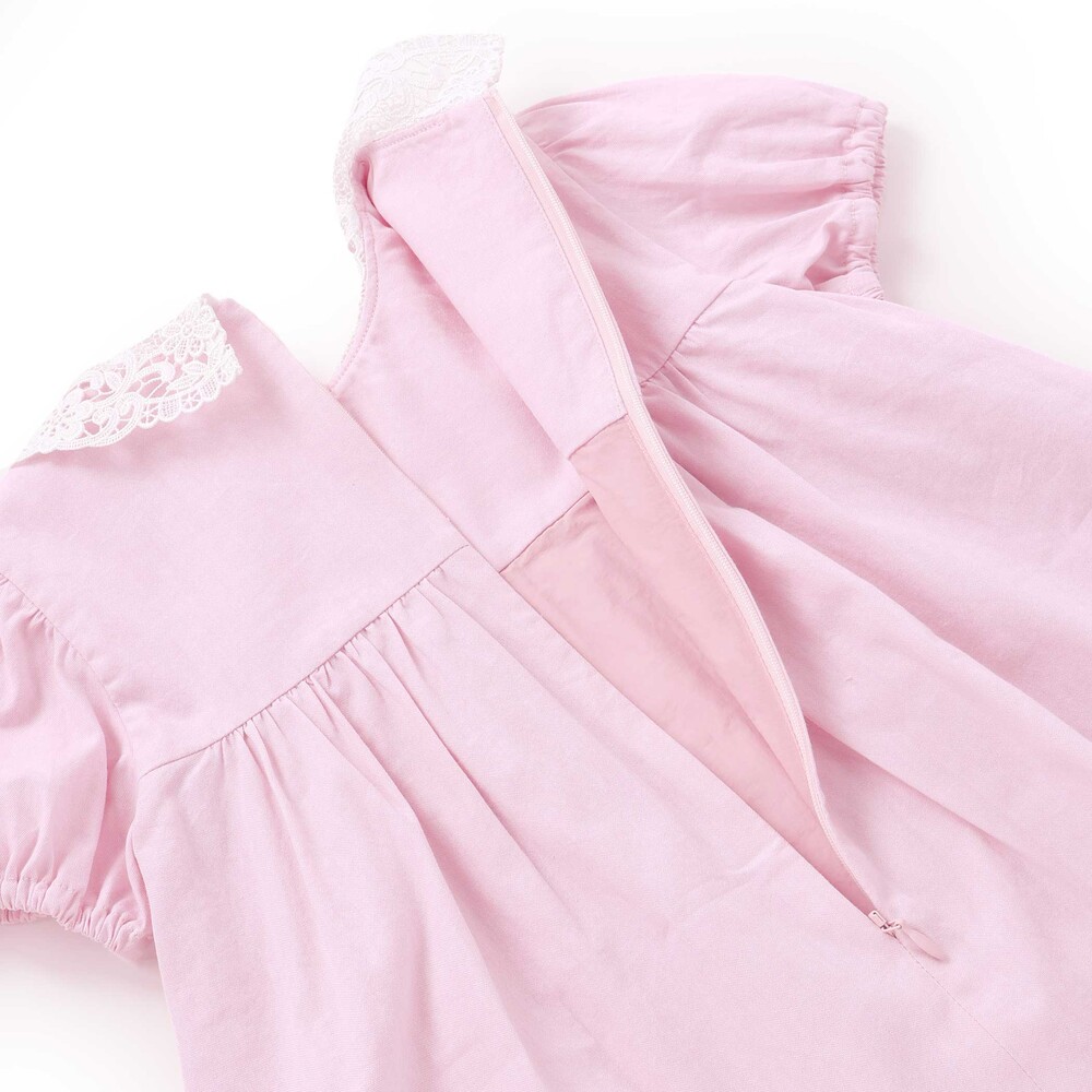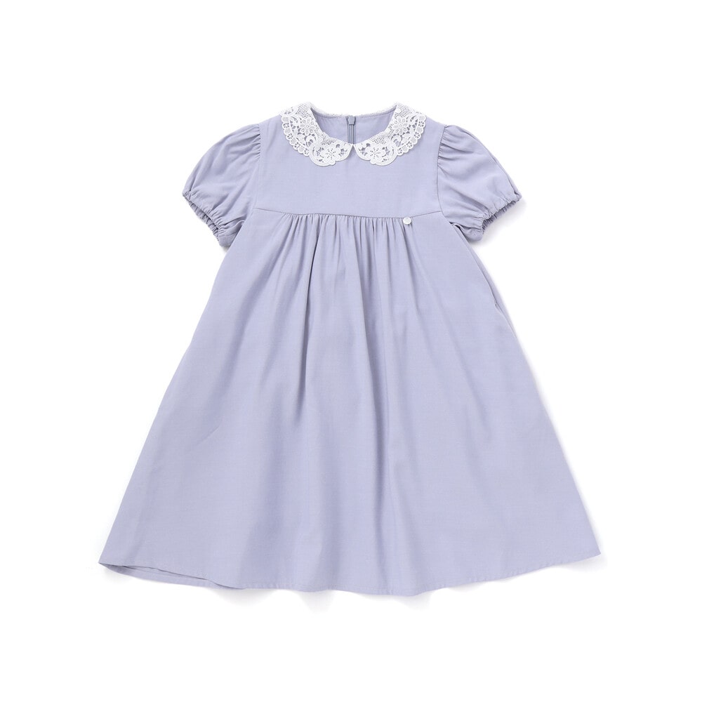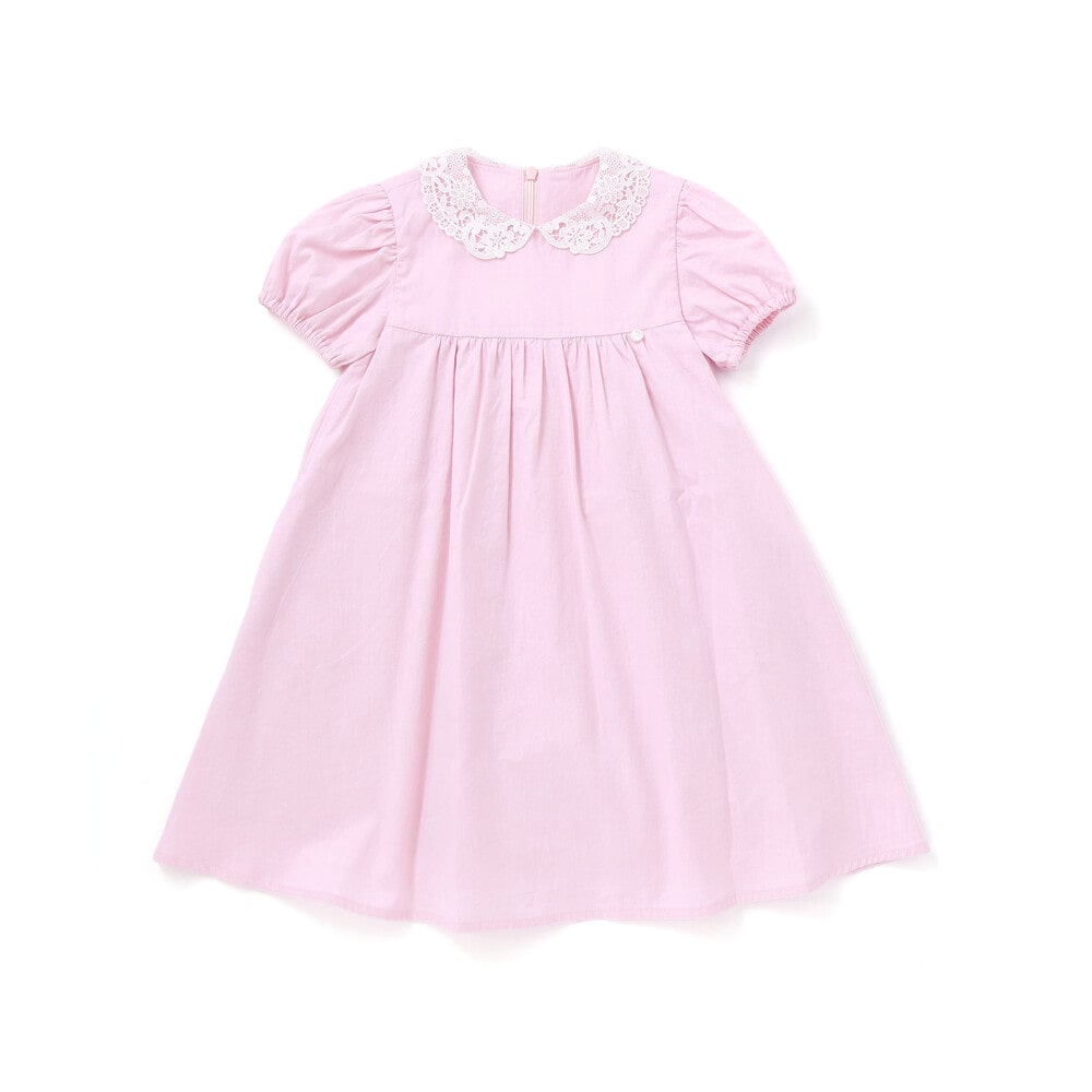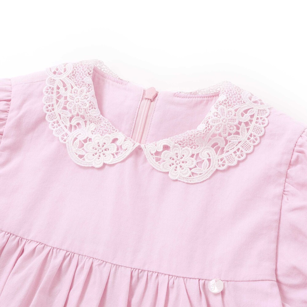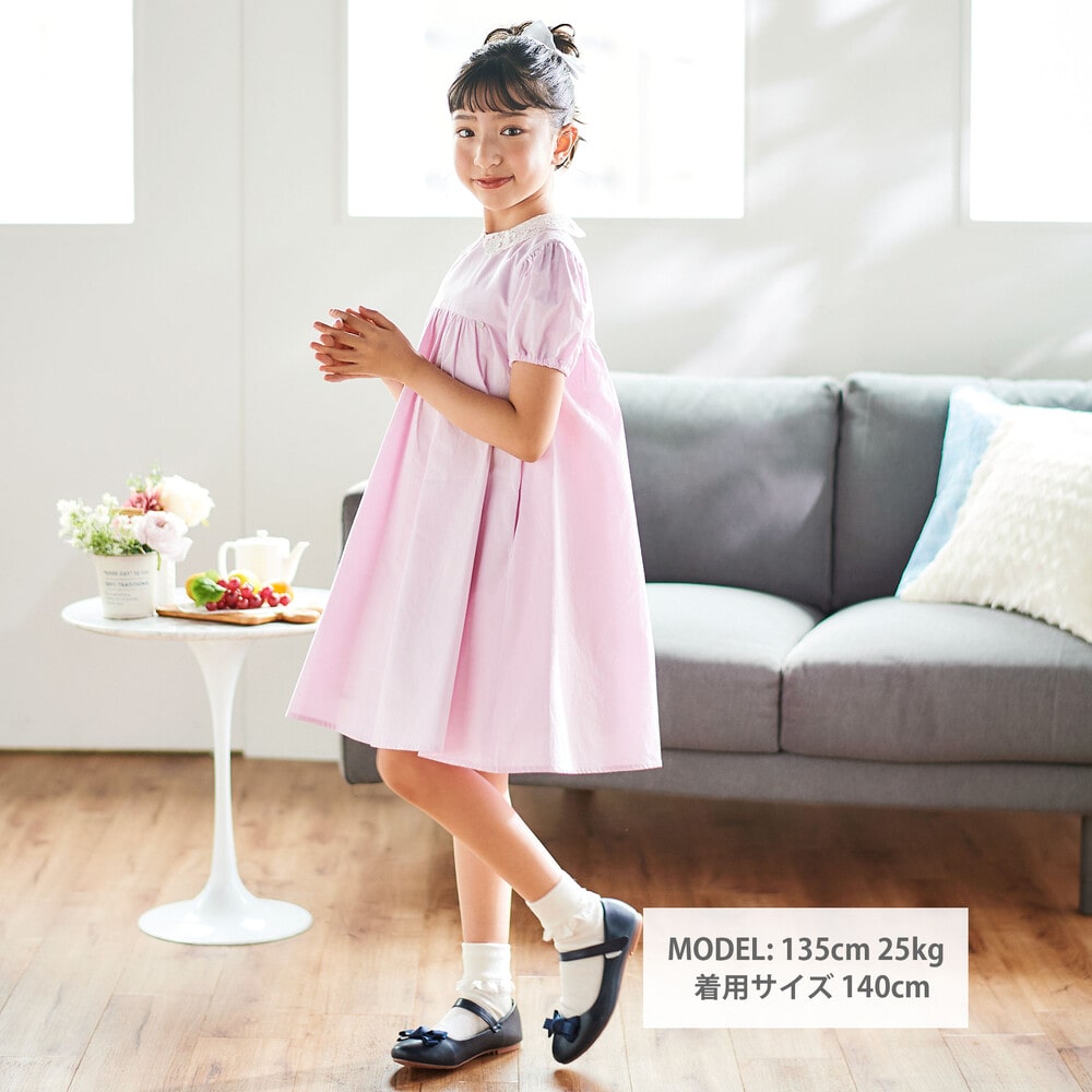 レースの襟とふんわりパフスリーブが、女の子らしい華やかさを引き立てます。