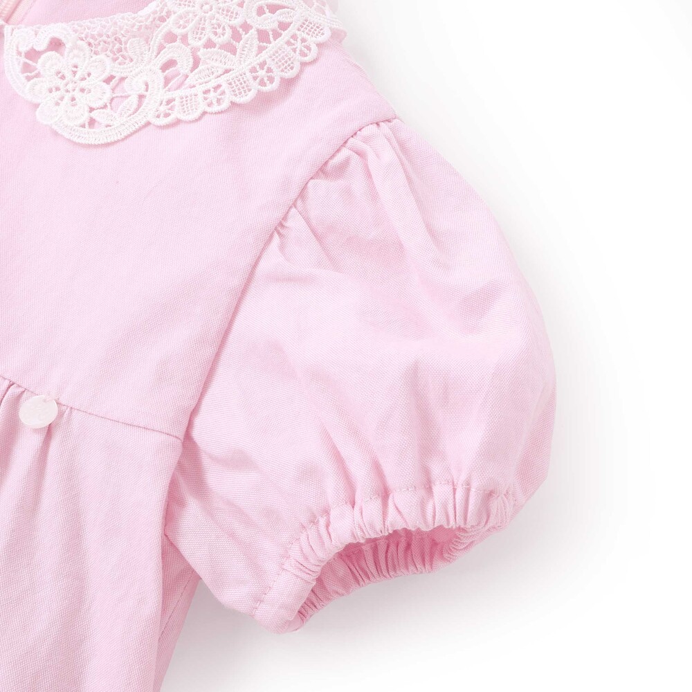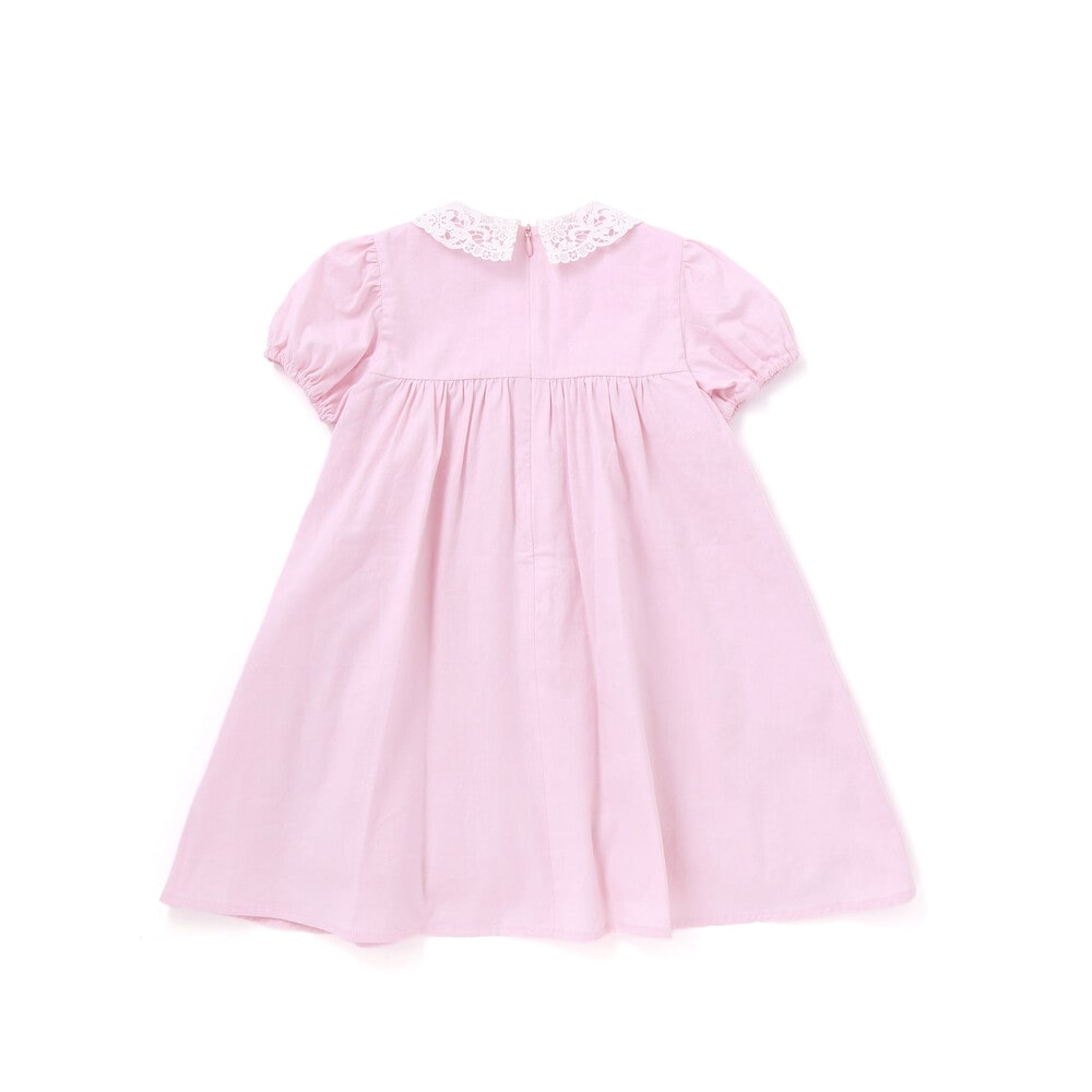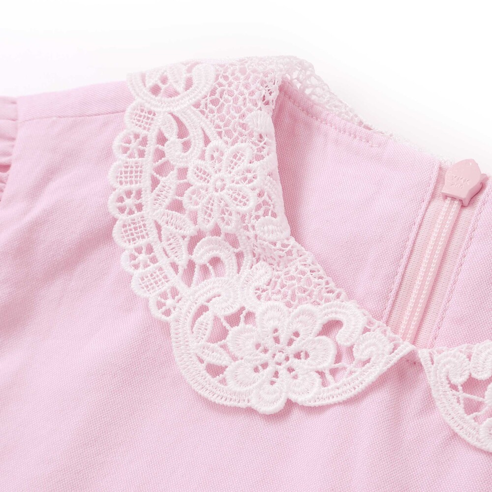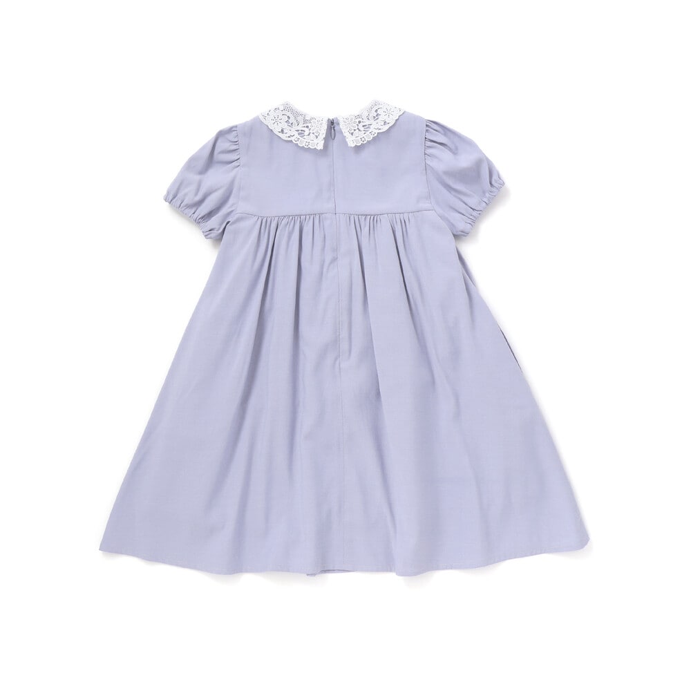 レースの襟とふんわりパフスリーブが、女の子らしい華やかさを引き立てます。