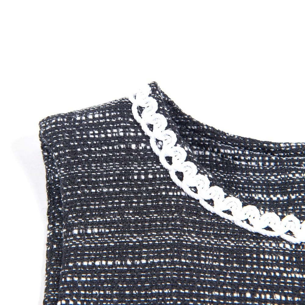 ブッチャー素材にブレードをデザインポイントに付けたお出かけにおすすめなジャンパースカートです。