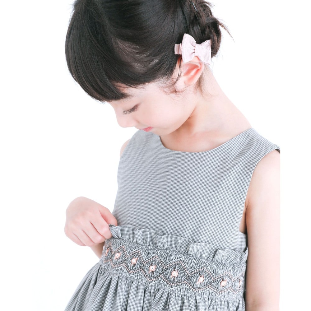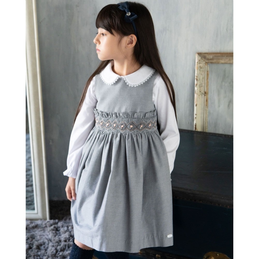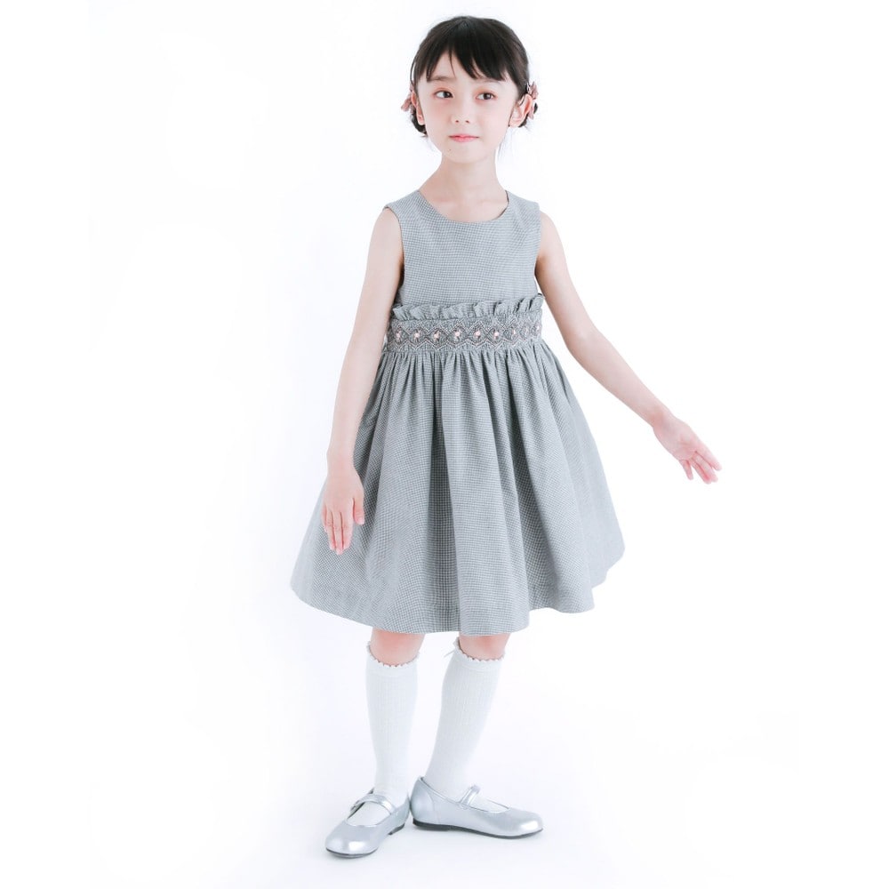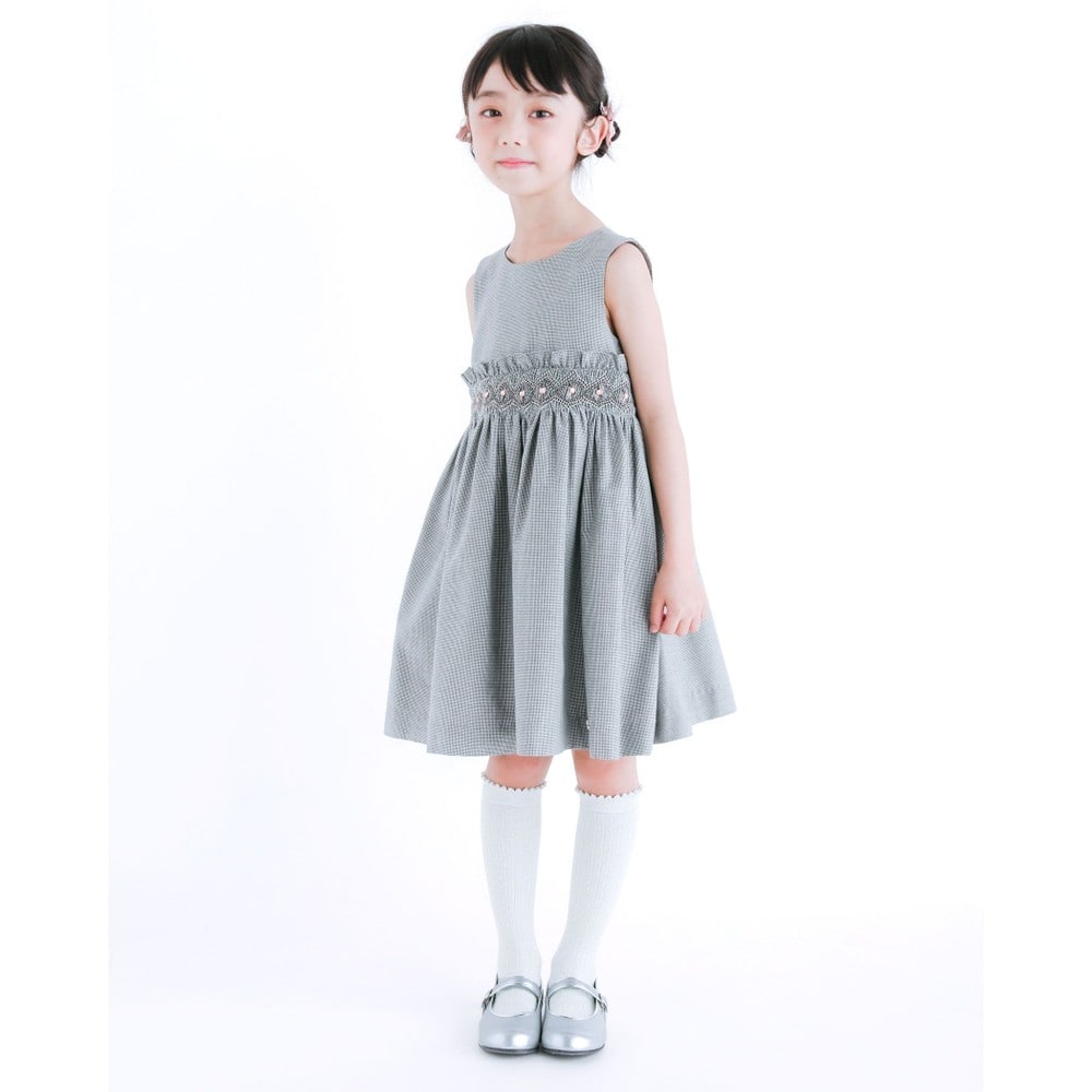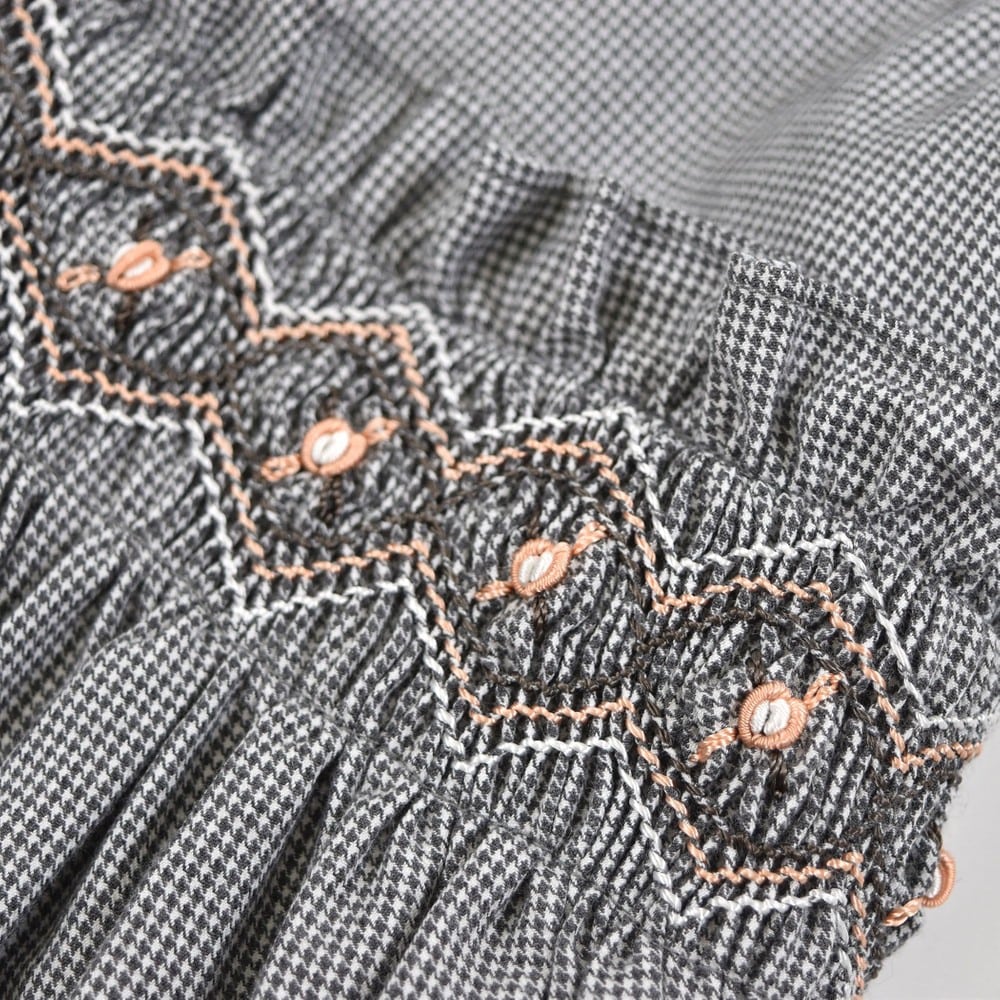 PARIS企画の千鳥柄生地を使用した、女の子用スモッキングワンピース。