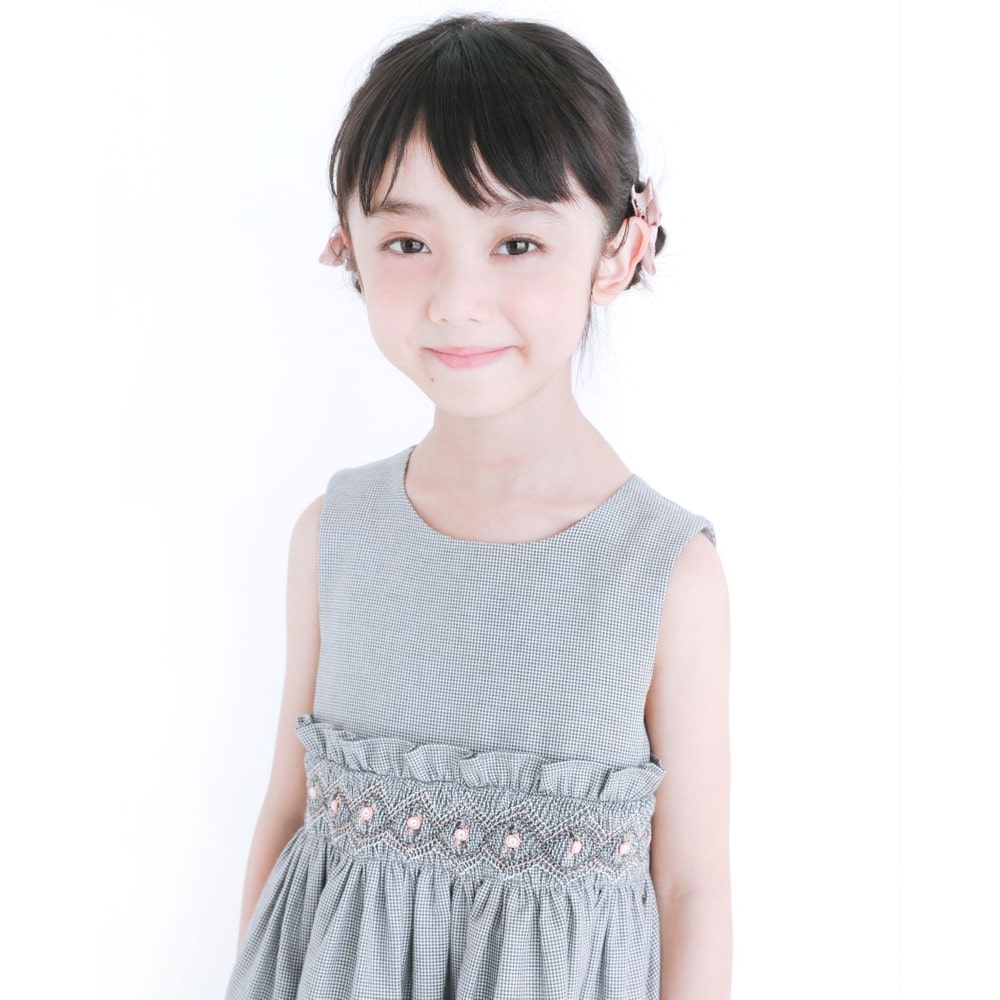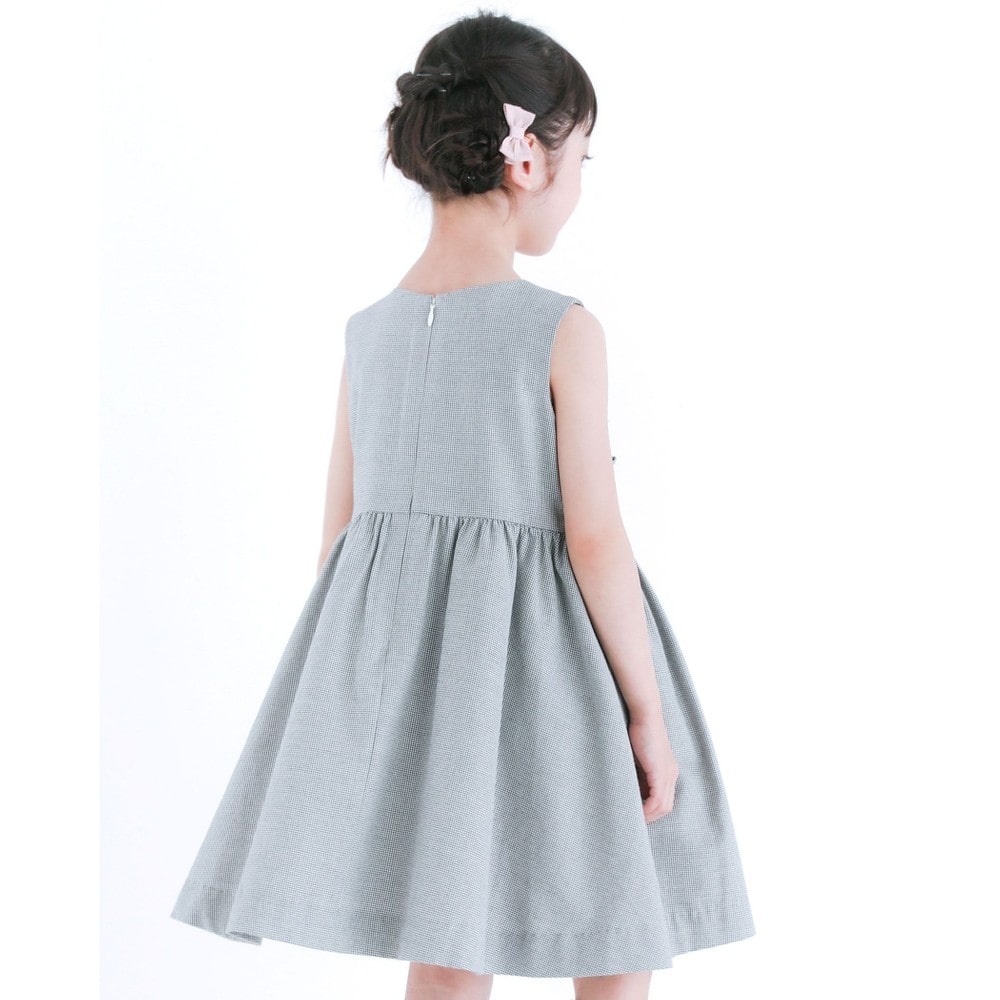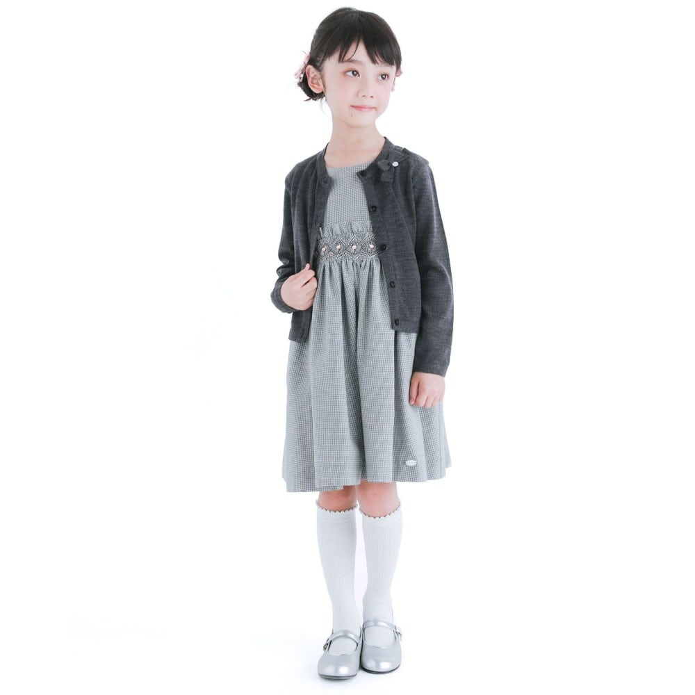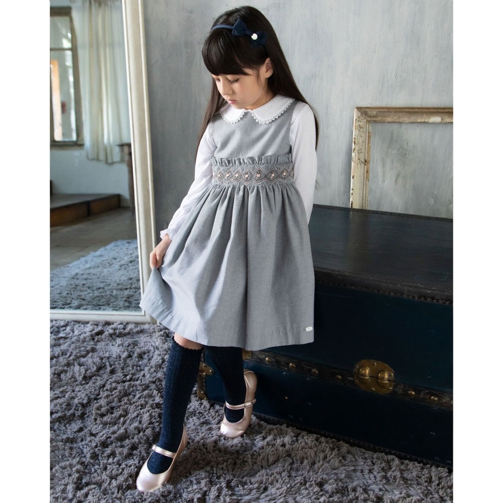 PARIS企画の千鳥柄生地を使用した、女の子用スモッキングワンピース。