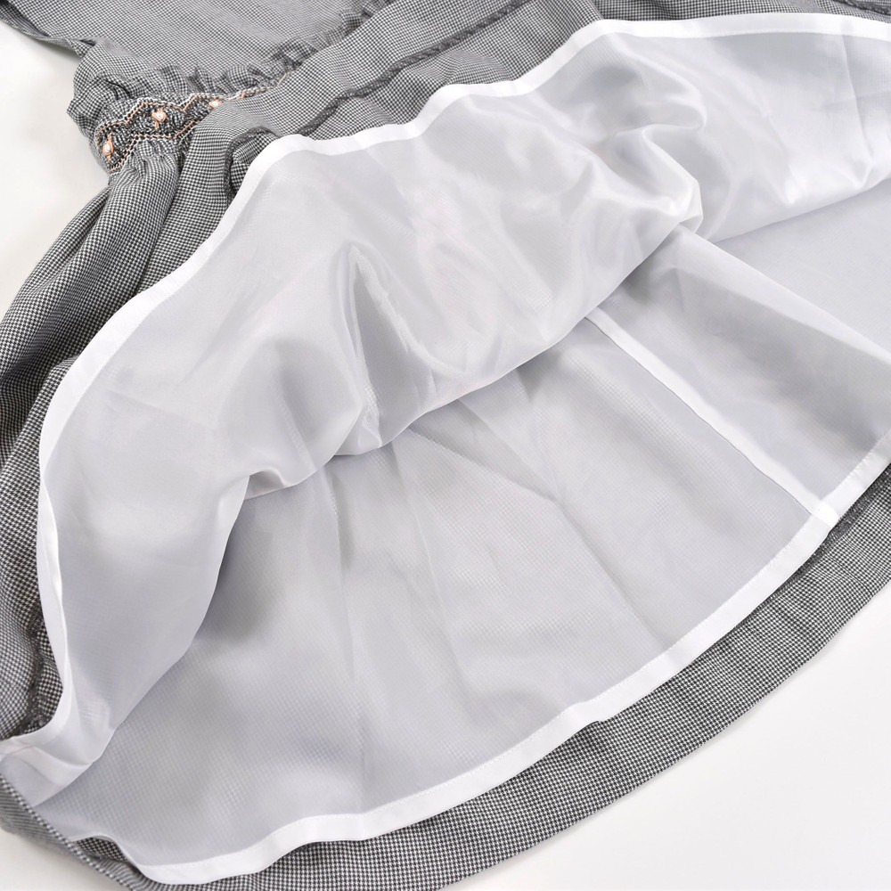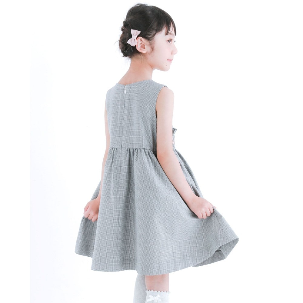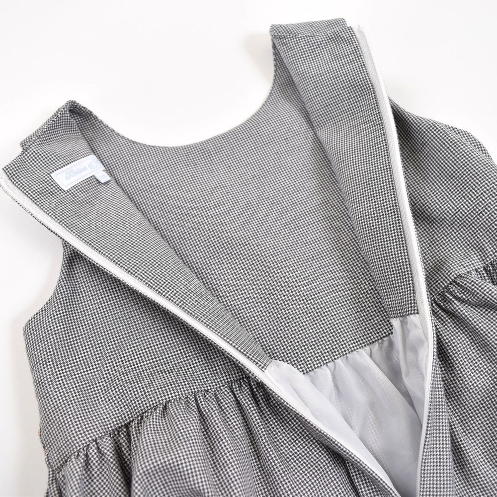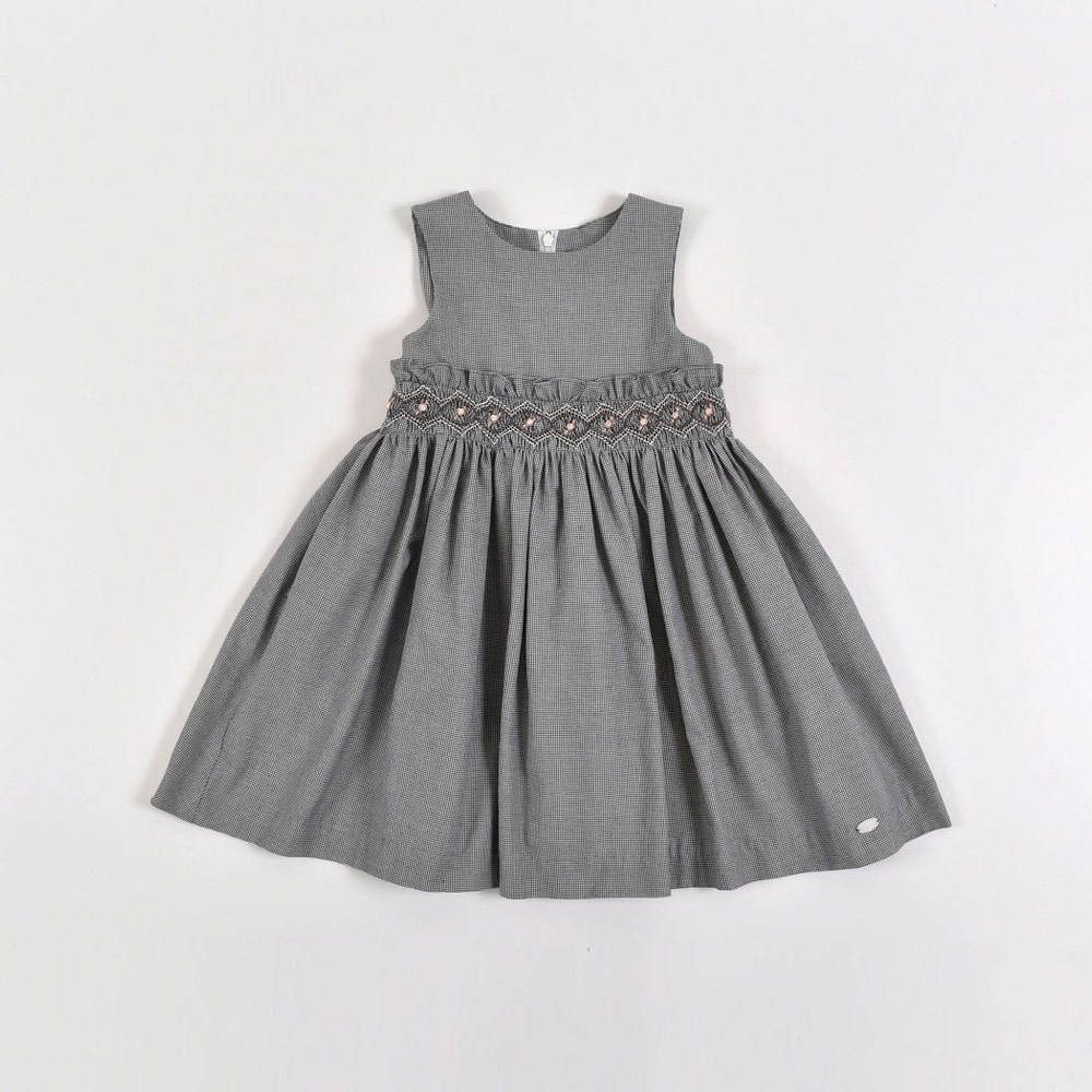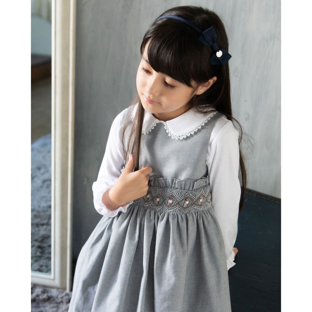 PARIS企画の千鳥柄生地を使用した、女の子用スモッキングワンピース。