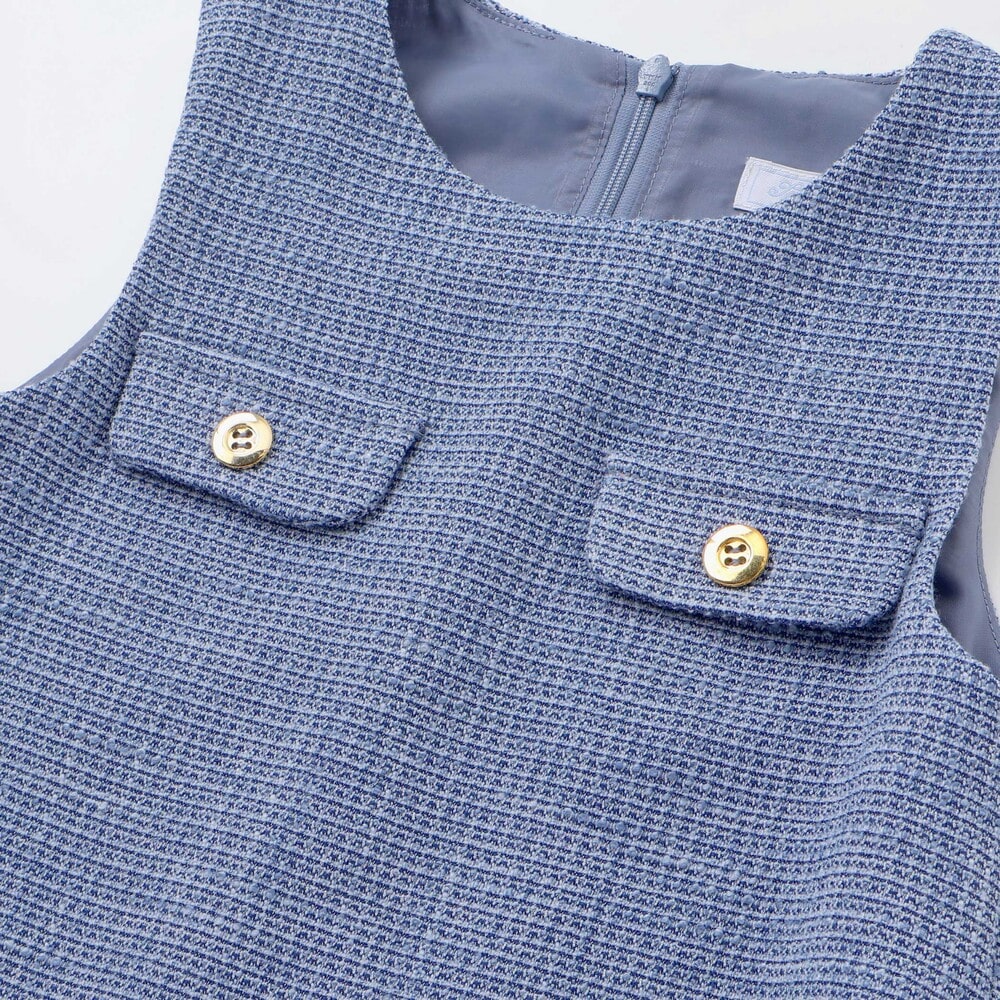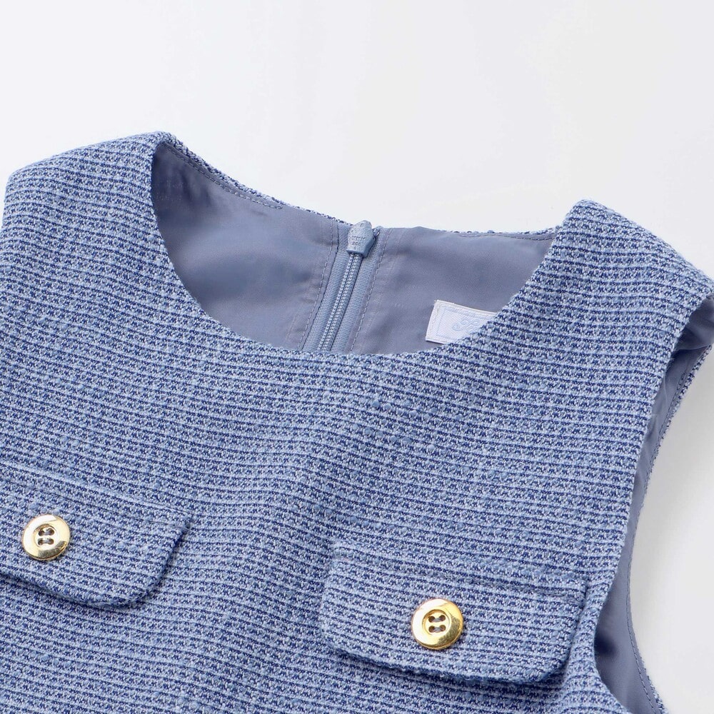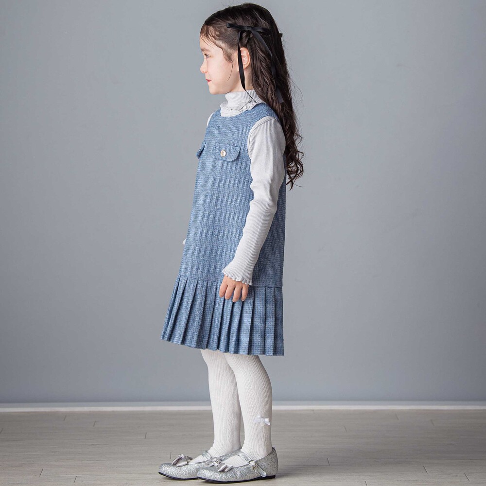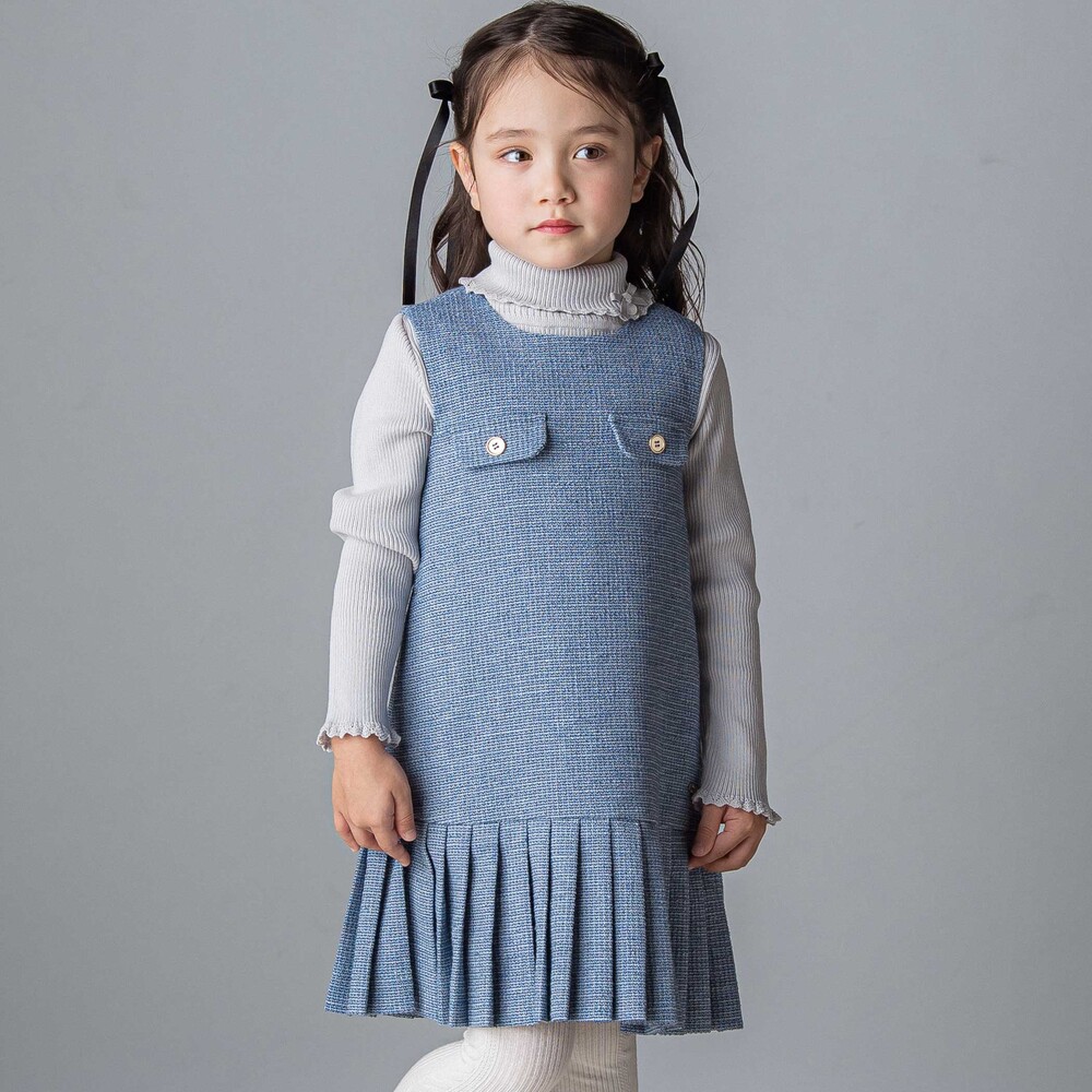 華やかなラメツイード生地をあしらった女の子用ジャンパースカート。