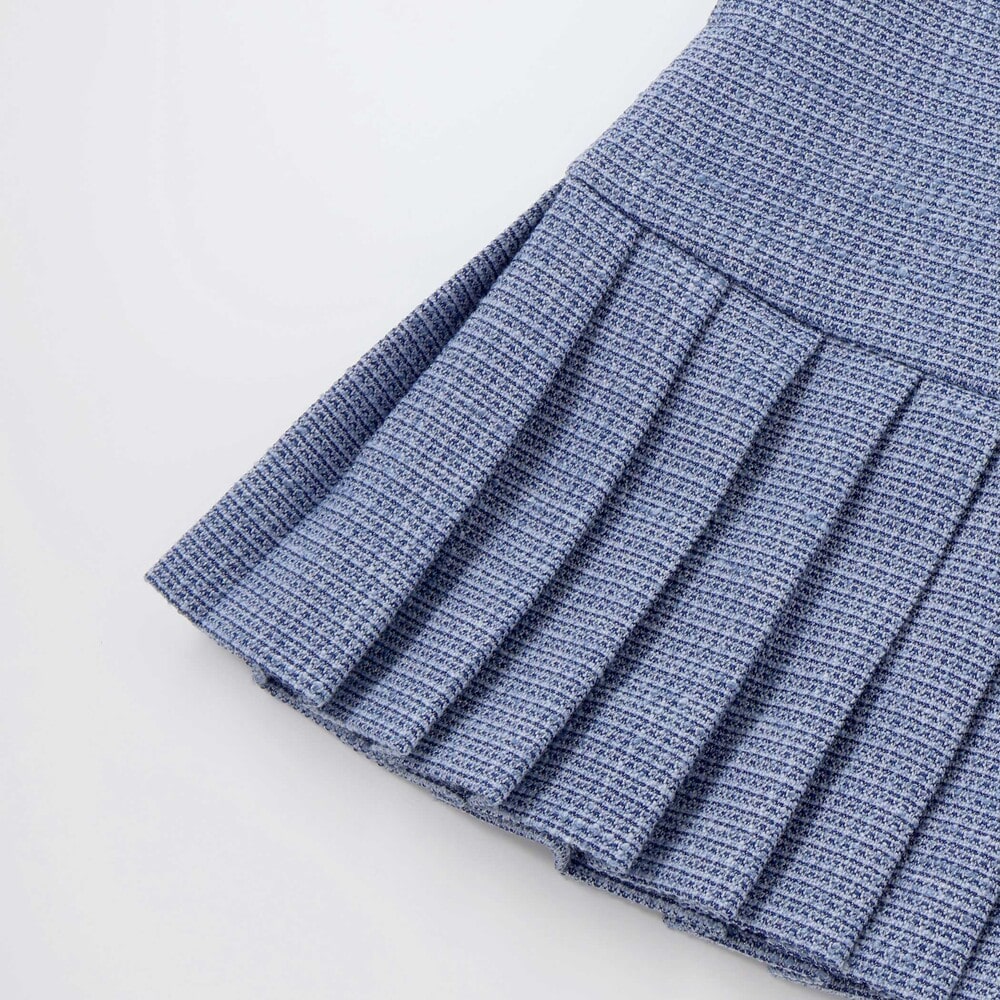 ローウエスト切替で広がるプリーツシルエットが、クラシカルで愛らしい印象に。