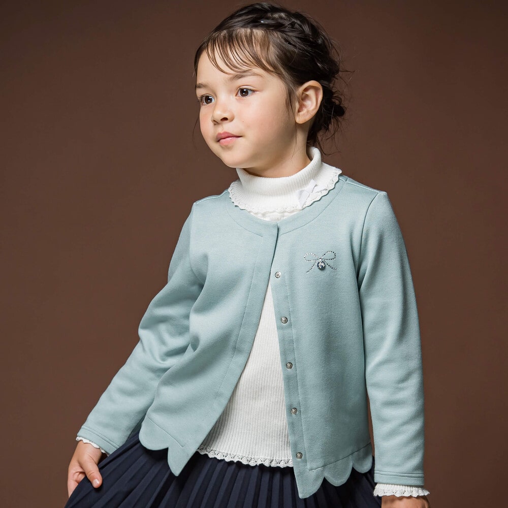 保温性の高いラグウォーム素材を使用した女の子用長袖カーディガン。