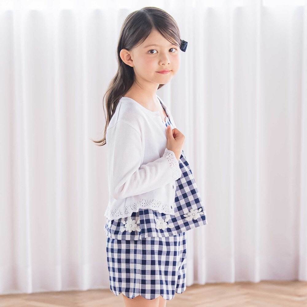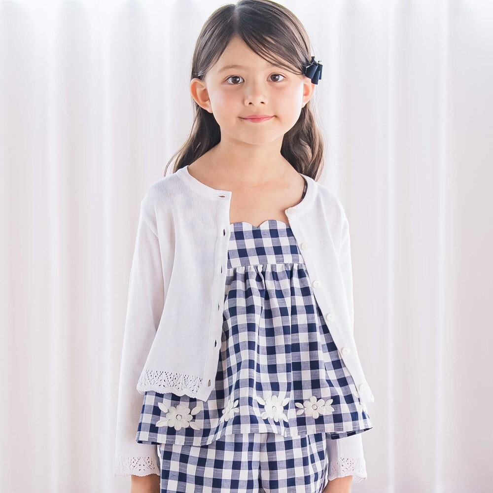 アクリルファイバーと綿を混紡した「ドラロン綿」を使用した女の子用カーディガン。
