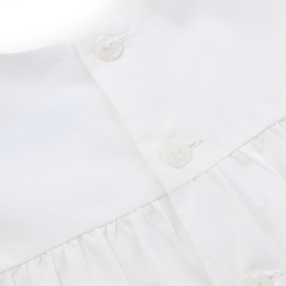 ボタン仕様の後ろ開きで。お着替えもスムーズなのも嬉しいポイント。