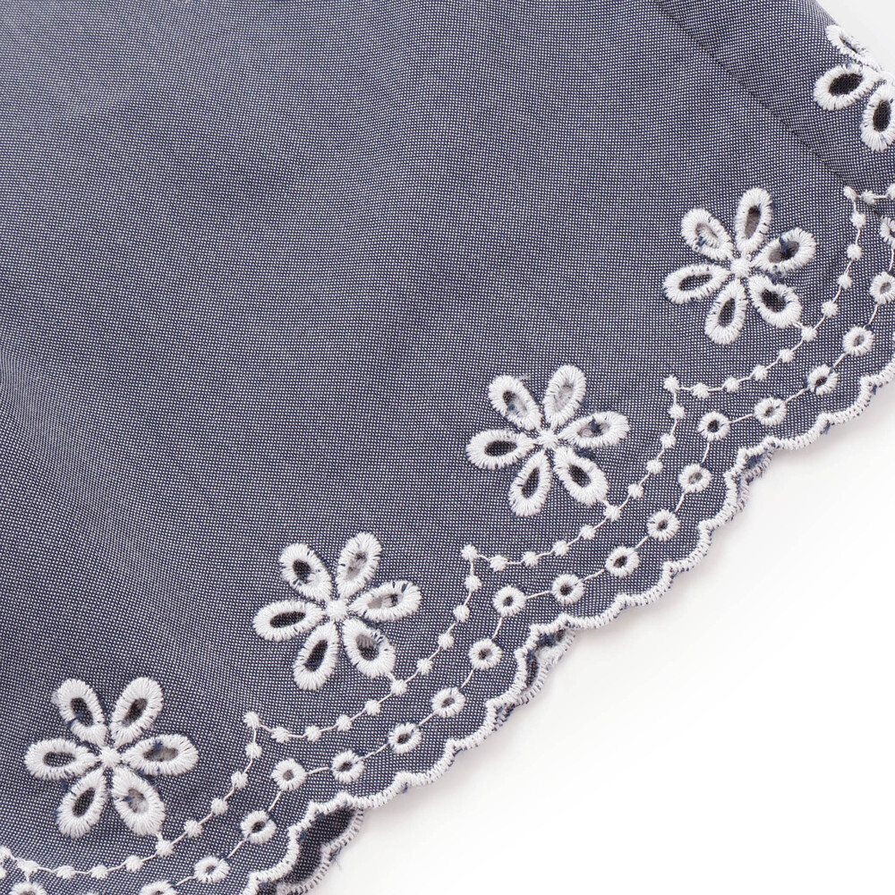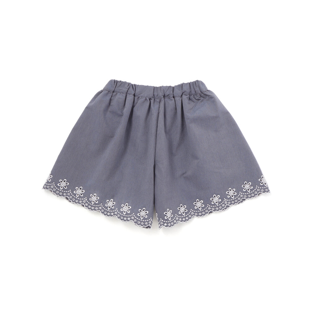 スカラップになった裾に刺しゅうを施したデザインがデイリーなショートパンツに華やかさをプラス。