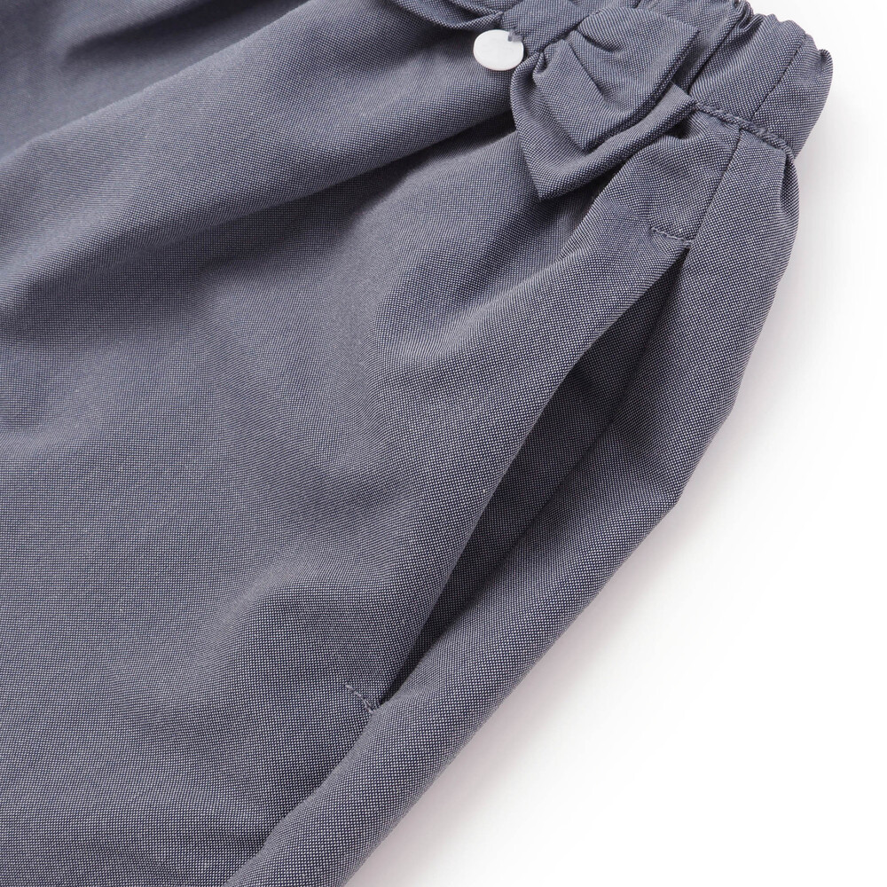 ウエスト部分にあしらったリボンはタックインしてお召しいただいた際に、ワンポイントのおしゃれになってくれます。