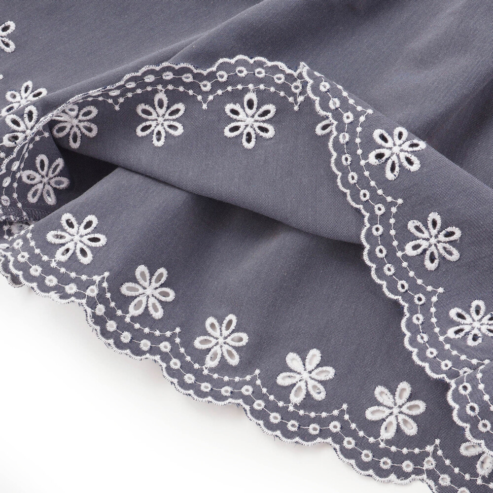 トップスをインせずに着用した際も、裾の刺しゅうがアクセントになってコーデを彩ります。
