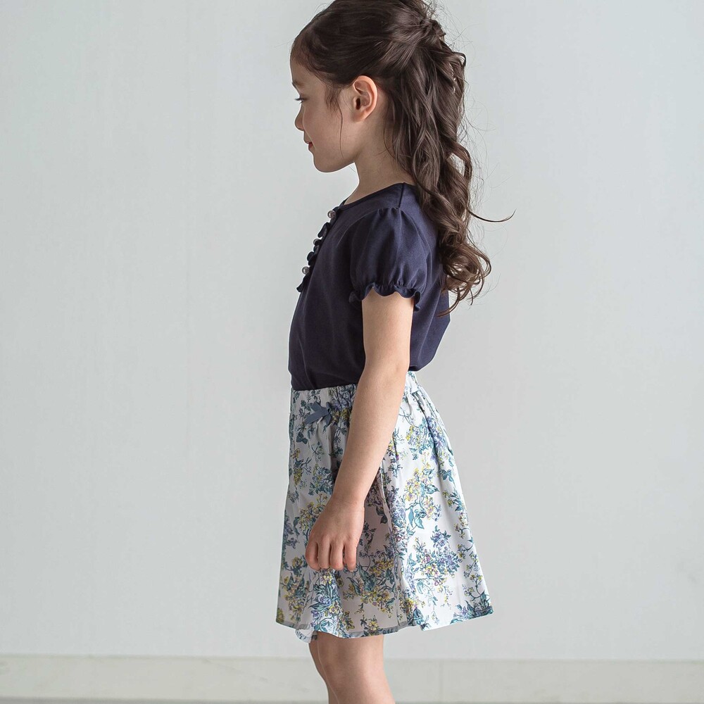 コーディネートの主役になってくれるリバティ柄なので、シンプルなトップスに合わせるだけでワンランクアップのコーデに◎