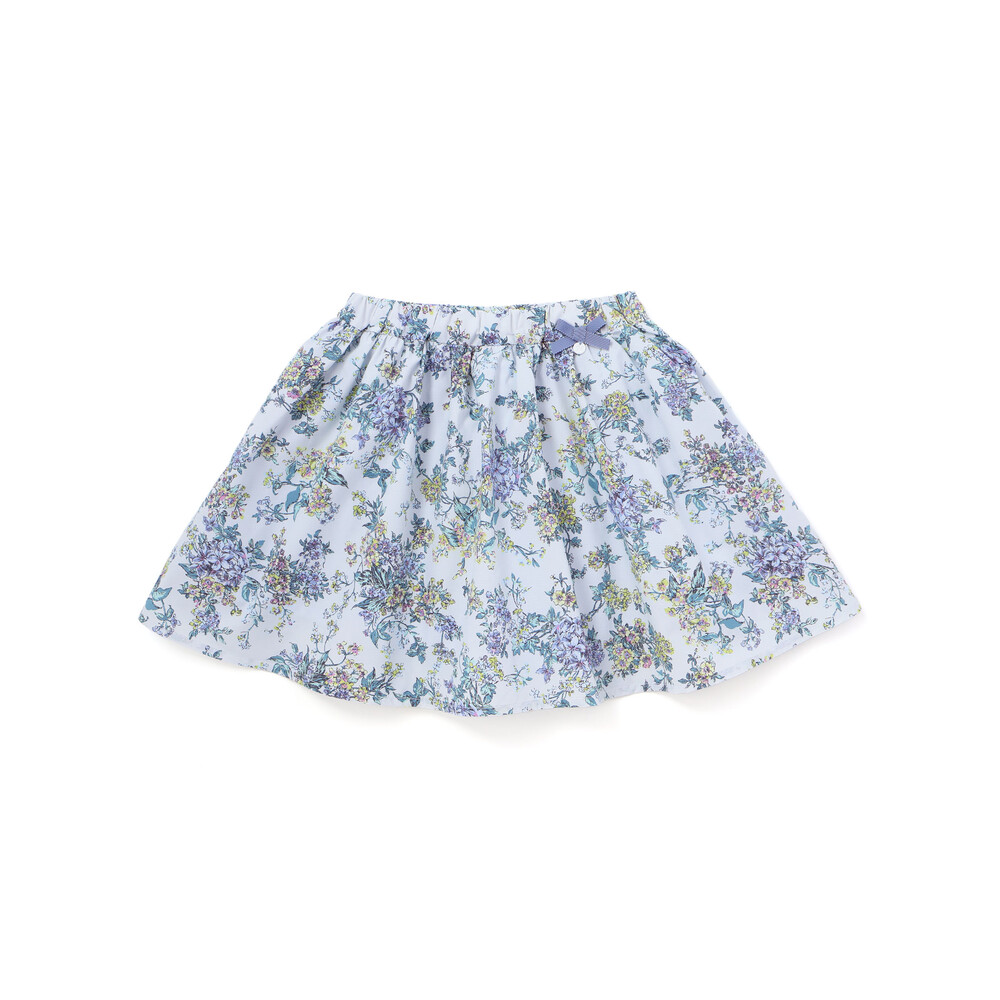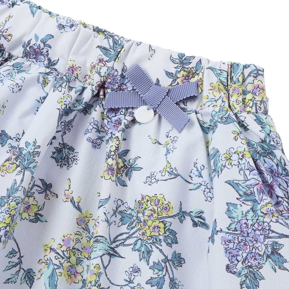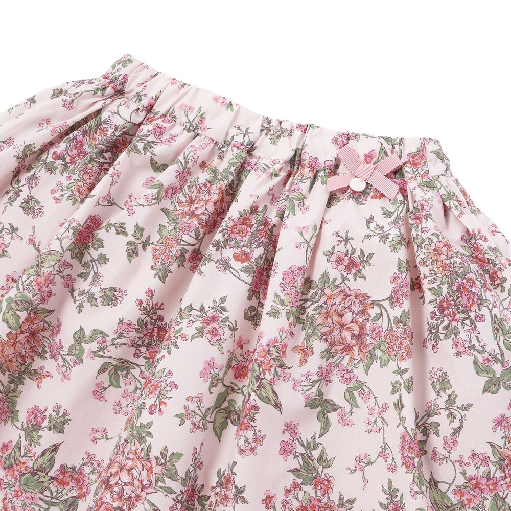 リバティ柄のリップストップ生地を使用し、ウエスト部分にリボンをあしらったスカートです。