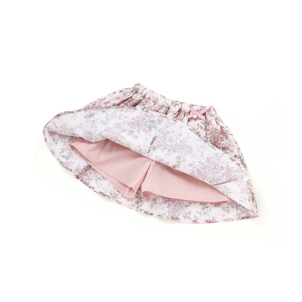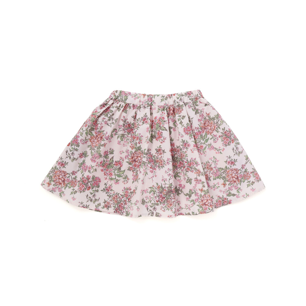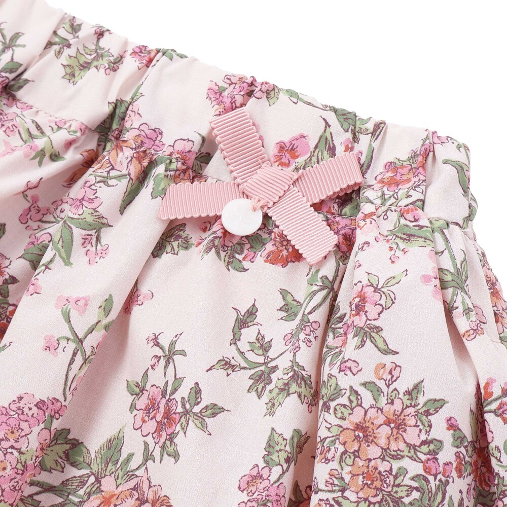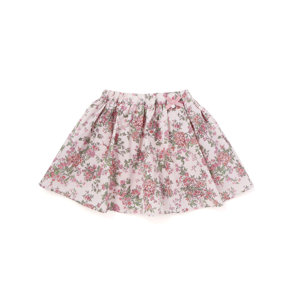 リバティ柄のリップストップ生地を使用し、ウエスト部分にリボンをあしらったスカートです。