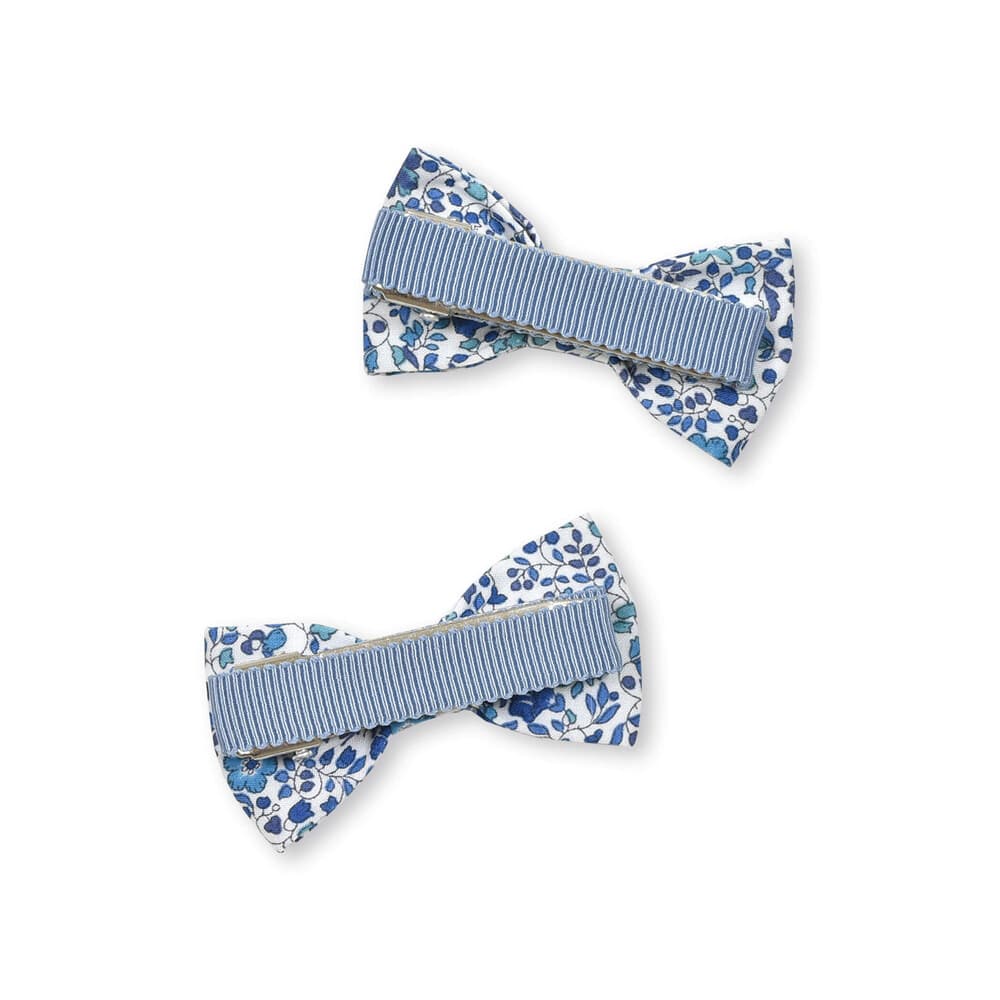 リバティのケイティ・アンド・ミリー柄を使用した女の子用ヘアクリップ。