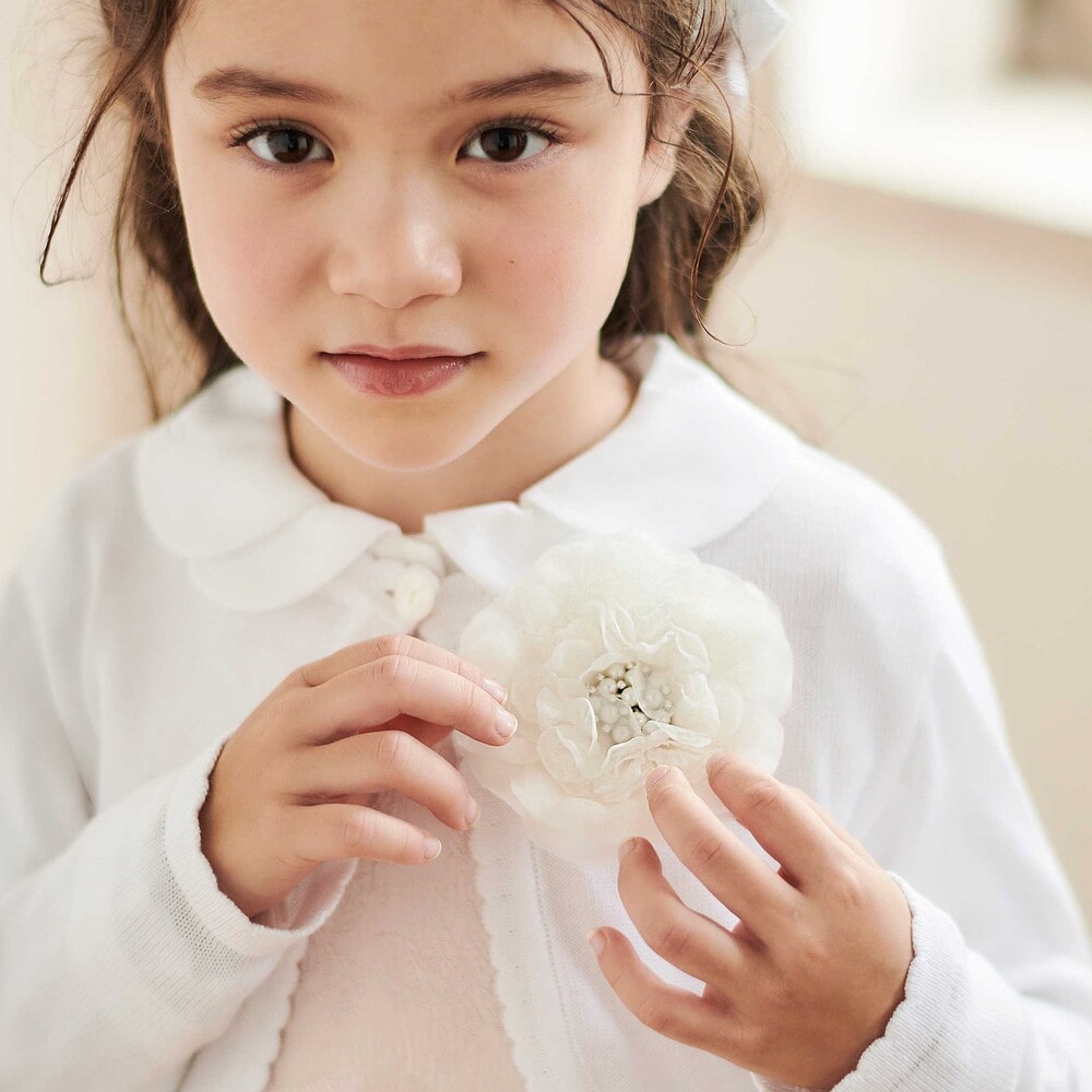 軽やかな素材感ときらめくビジューの花芯で、上品な印象を演出します。