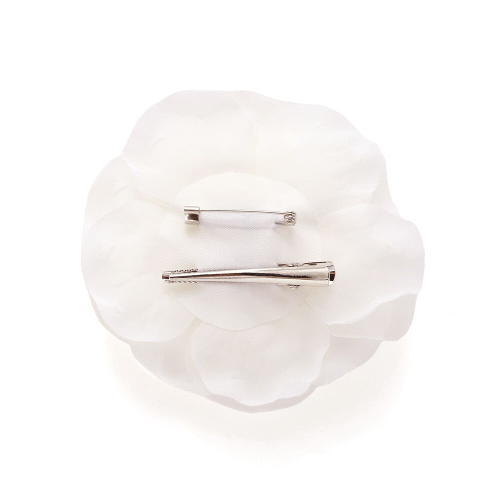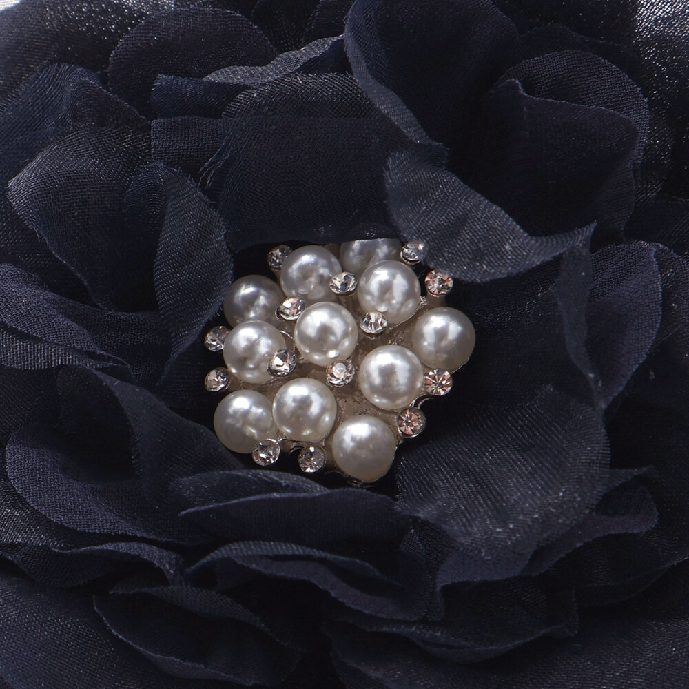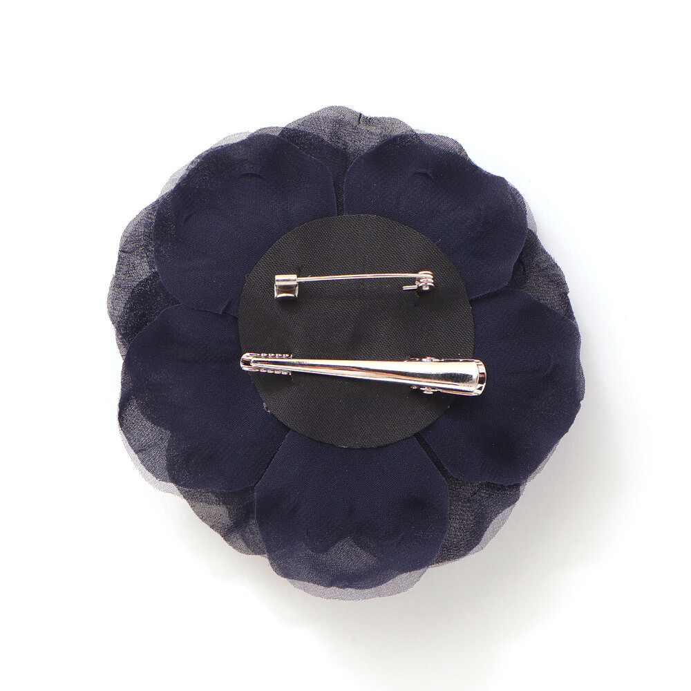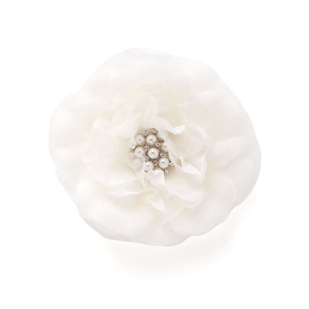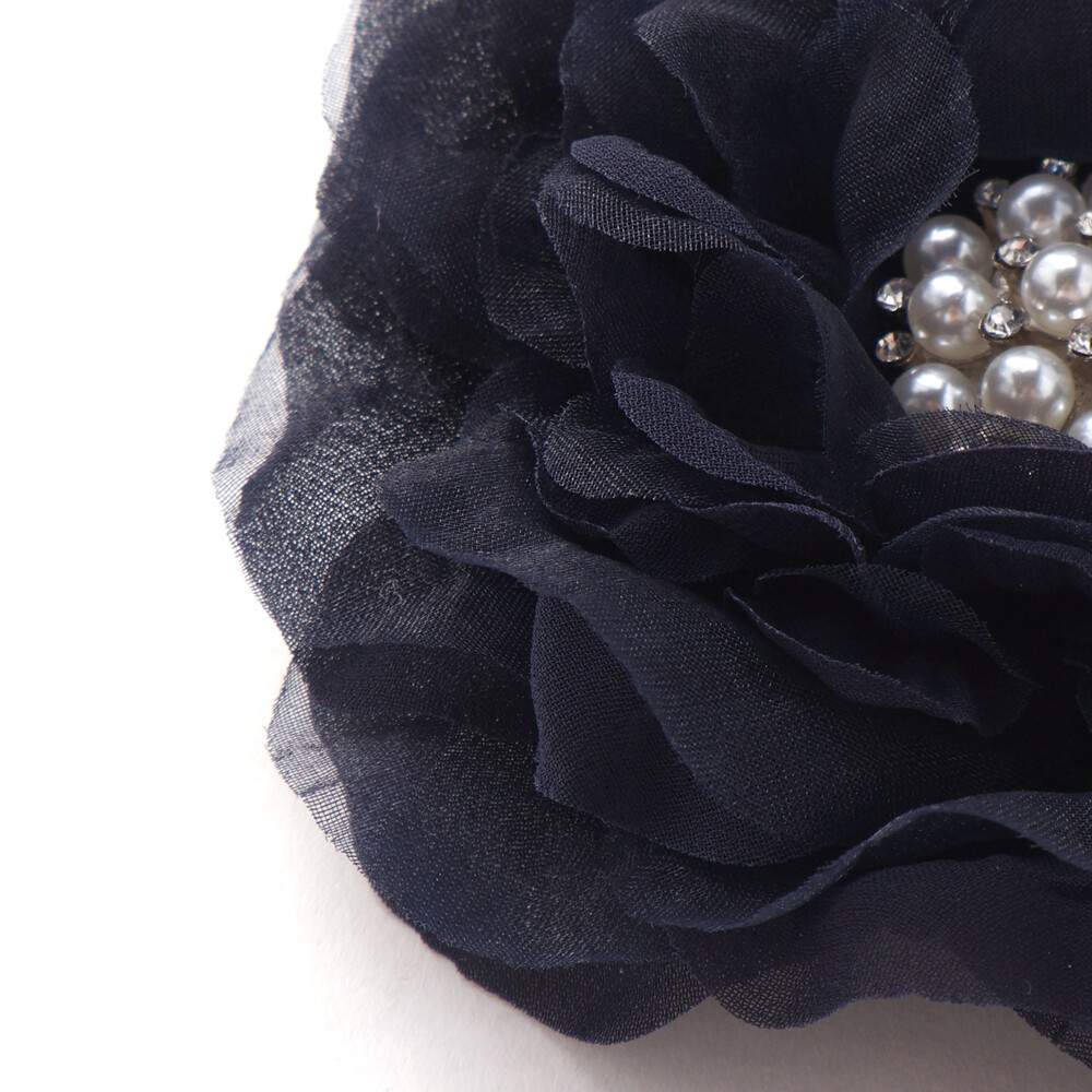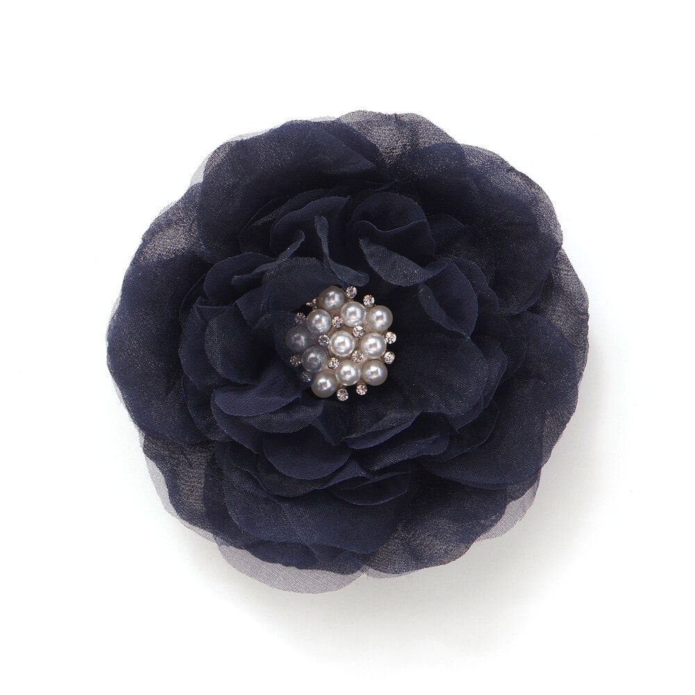 真ん中のビジューが華やかさを引き立てるオーガンジー素材のコサージュ。