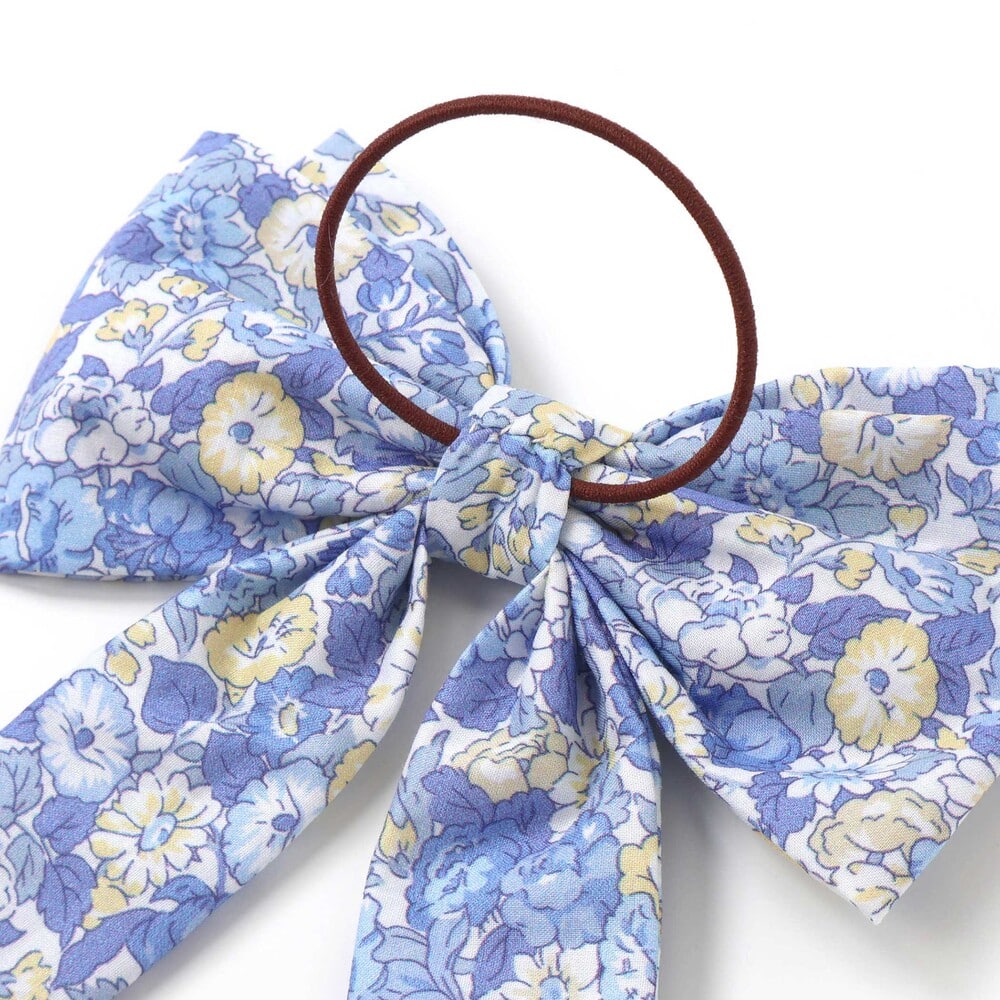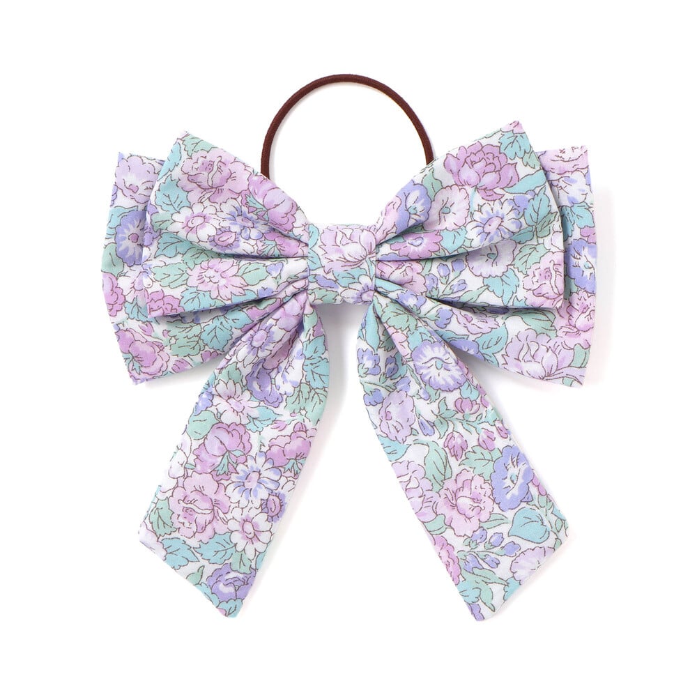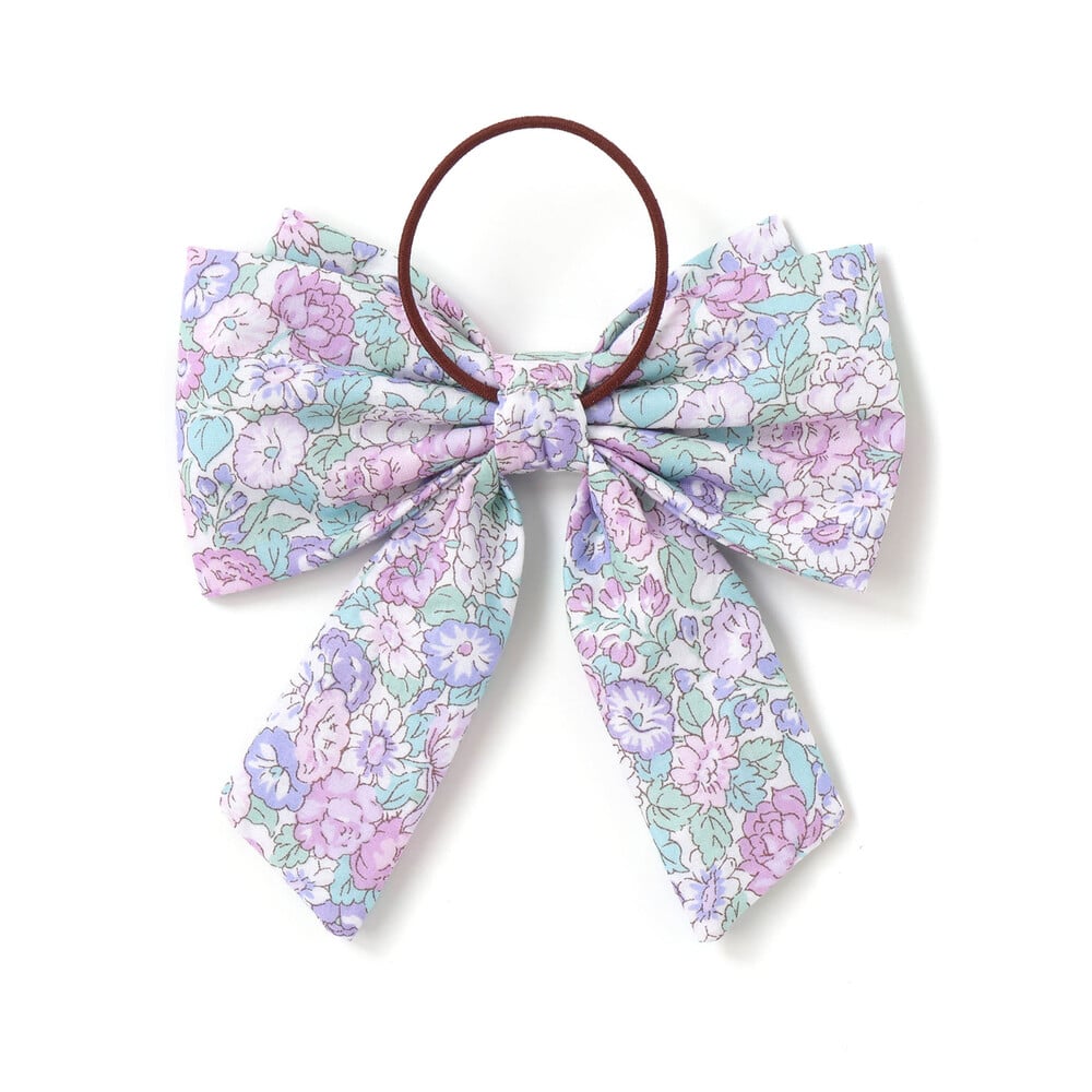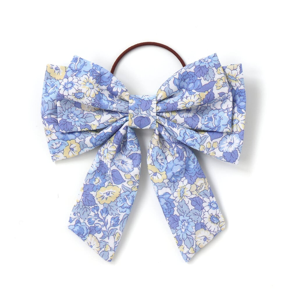 リバティの小花柄とリボンのデザインが上品で可愛らしく、髪をこのゴムでまとめるだけで簡単に華やかでキュートなヘアスタイルに◎