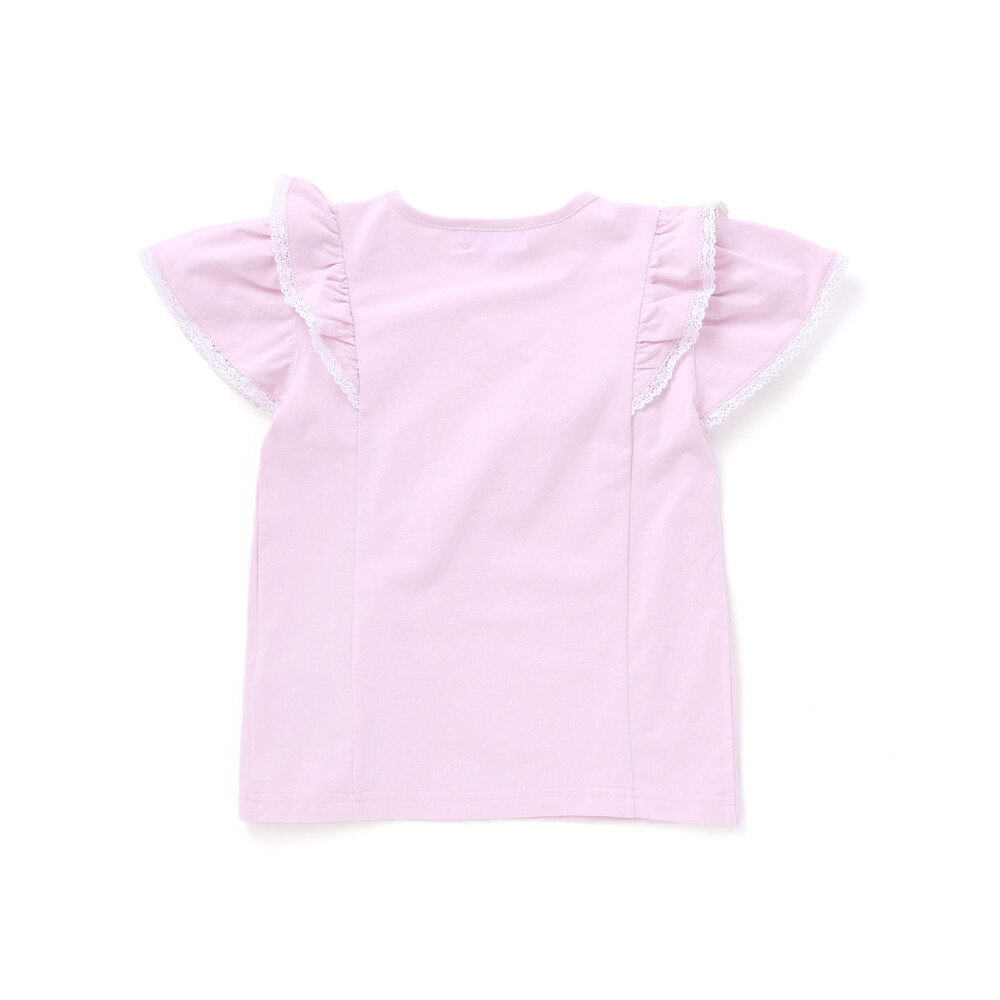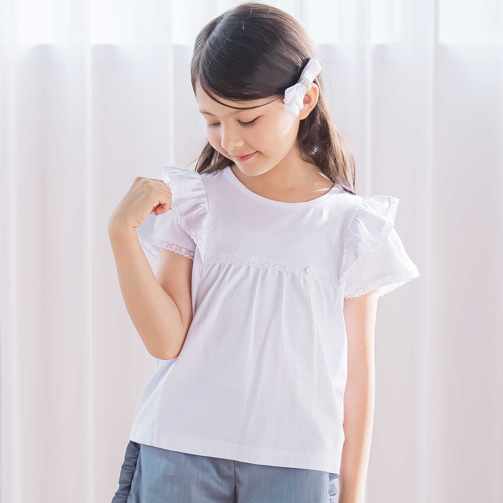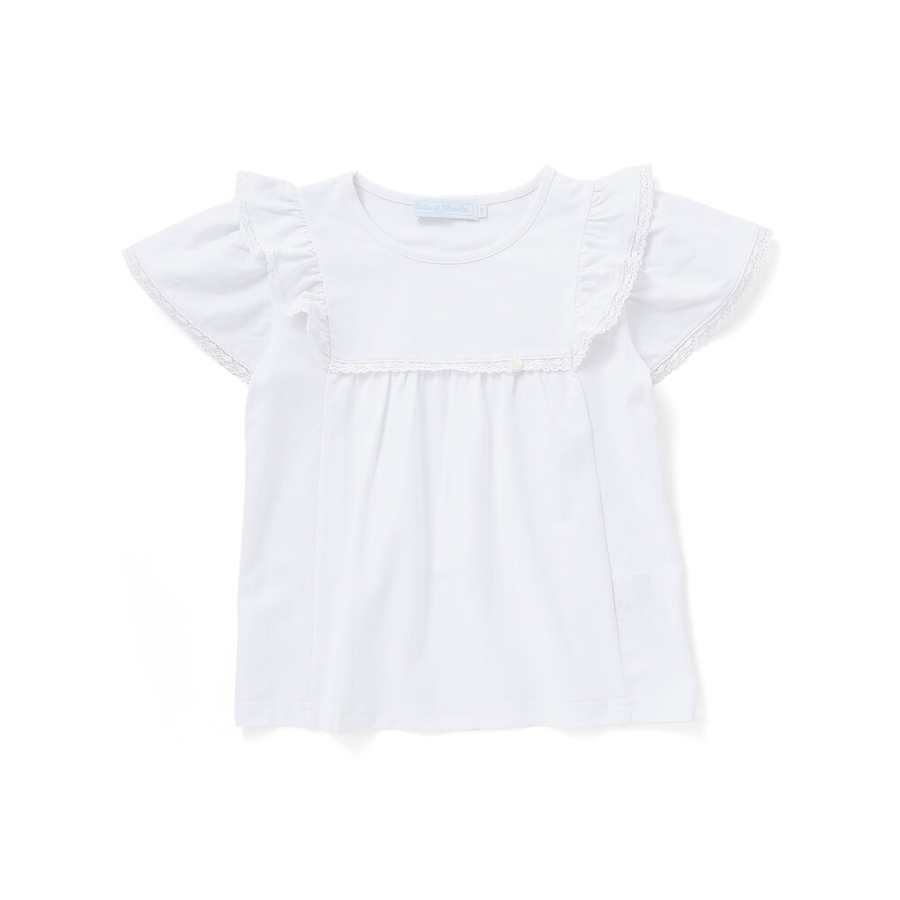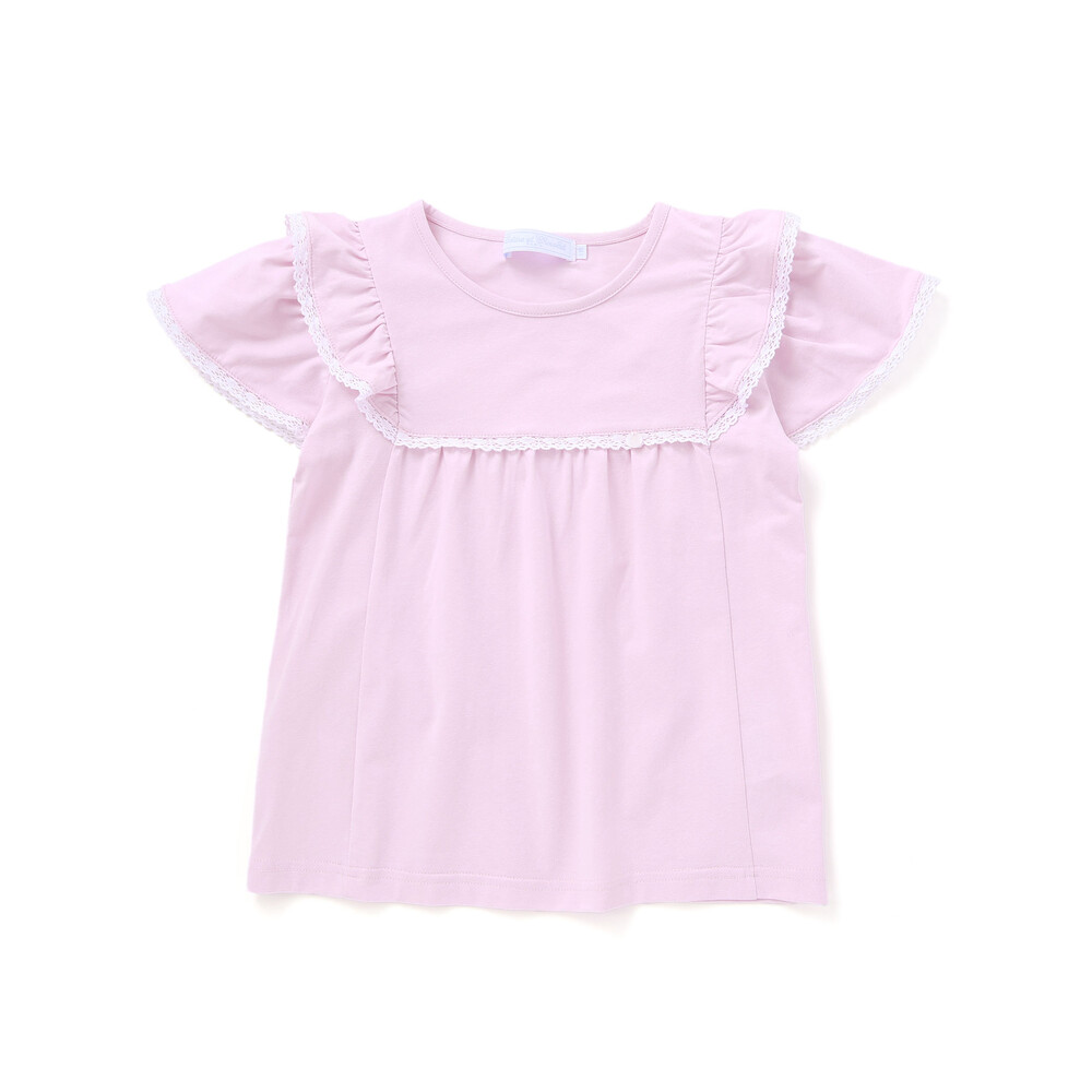 ギャザーフリルとレースがアクセントになった女の子用Tシャツです。