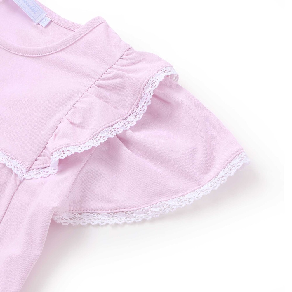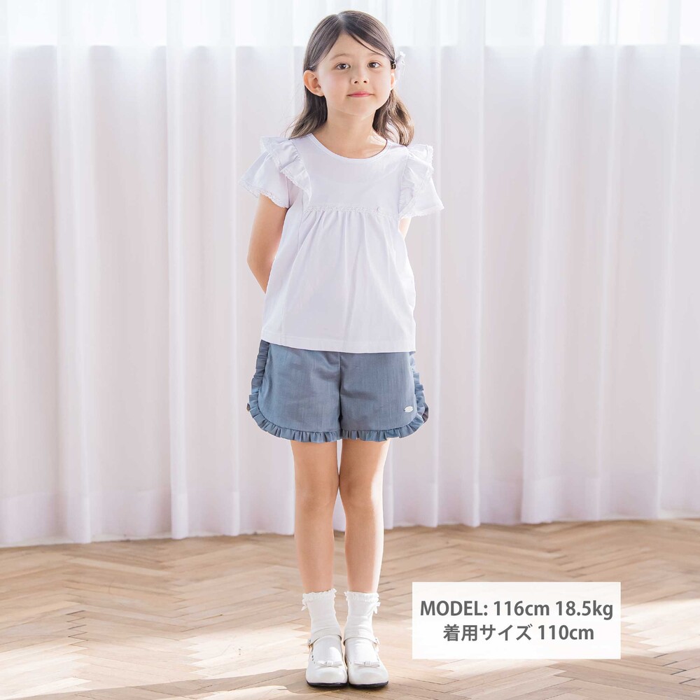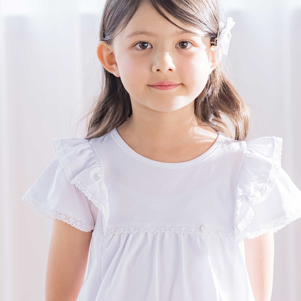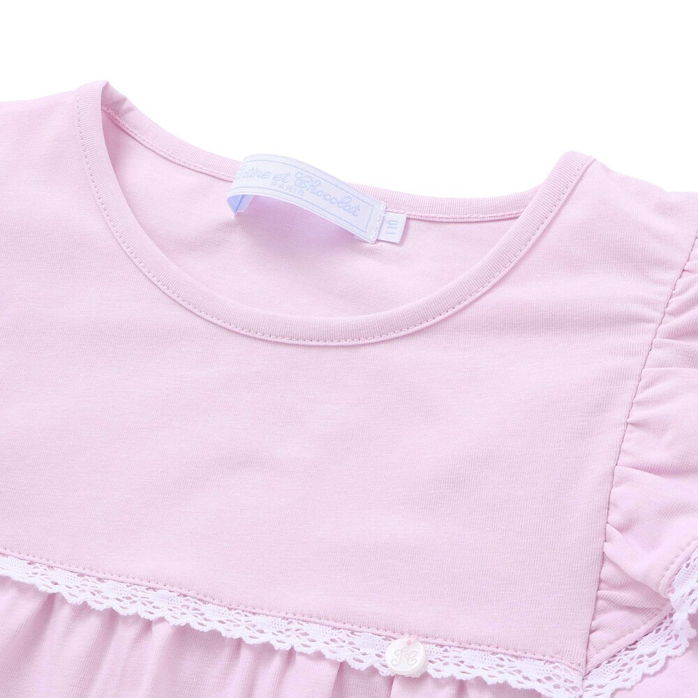 ギャザーフリルとレースがアクセントになった女の子用Tシャツです。