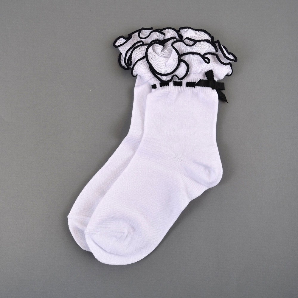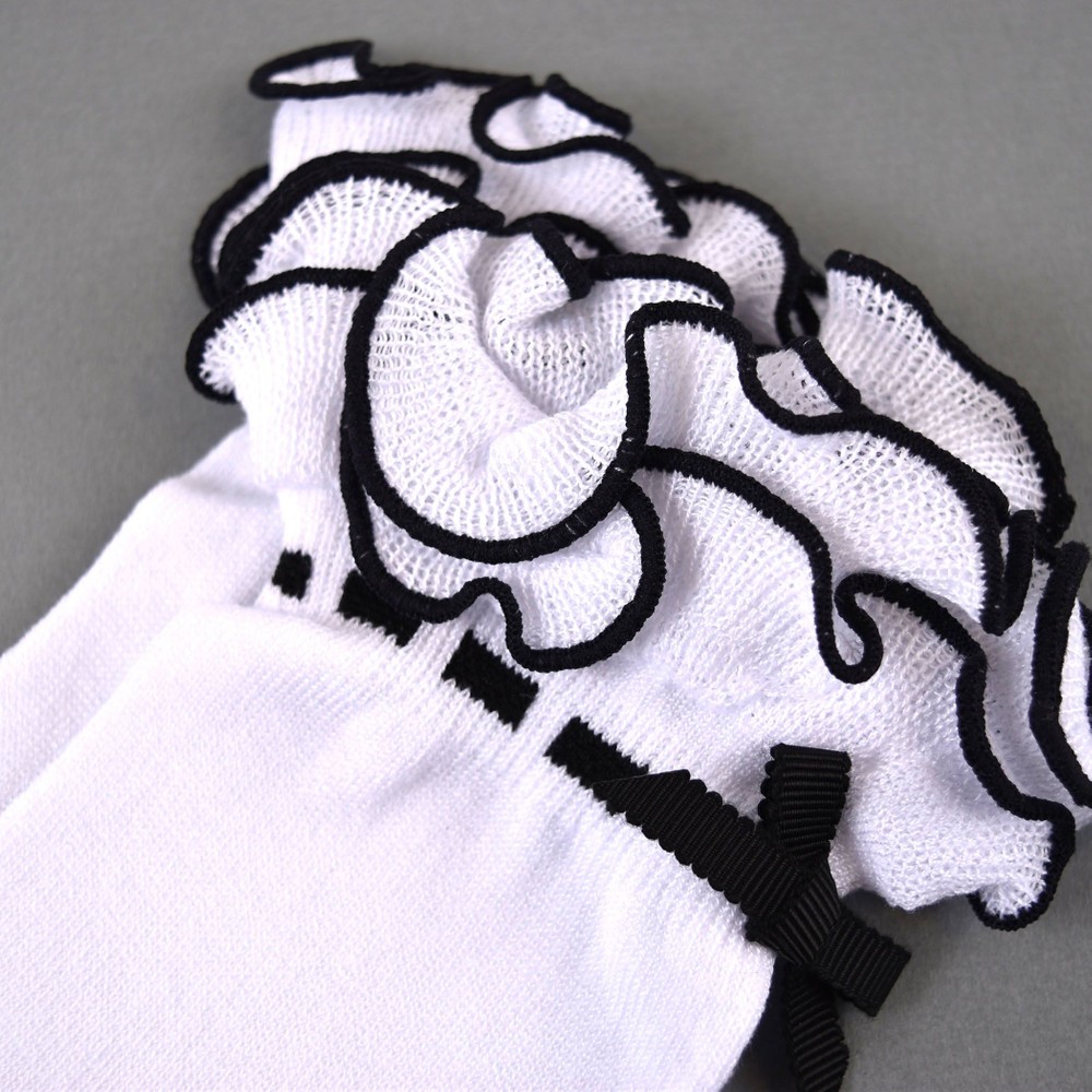リボンテープが通っているかのようなデザインリボンがポイントの上品な女の子用ソックス。