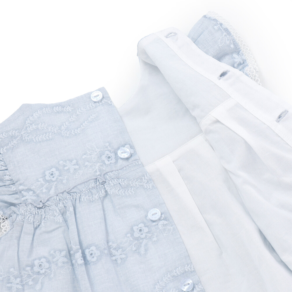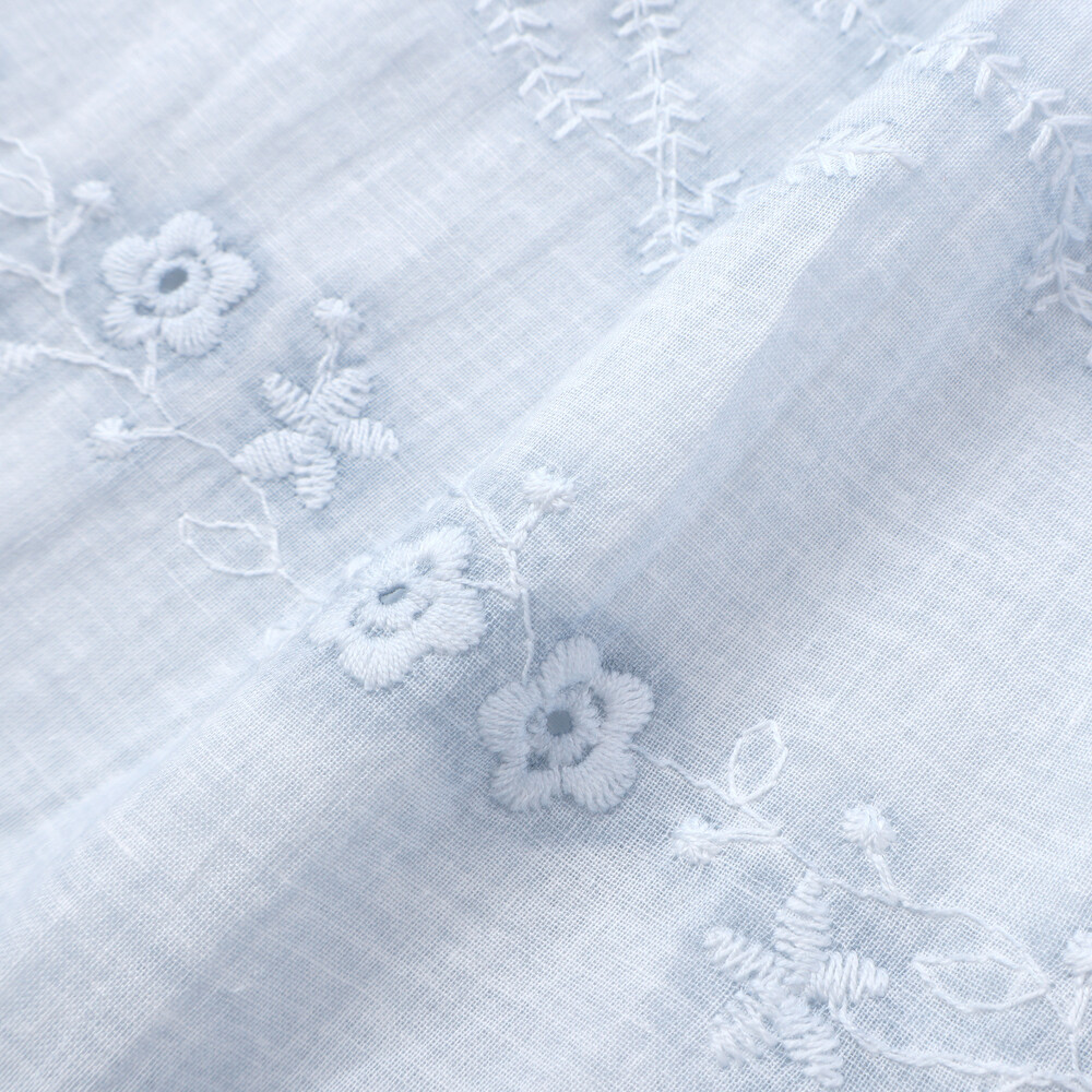 ワンピースの身生地には軽やかな綿レースを使用し、裏地には肌触りが良く通気性に優れたブロードを採用しているため、汗ばむ季節も安心して着用いただけます。