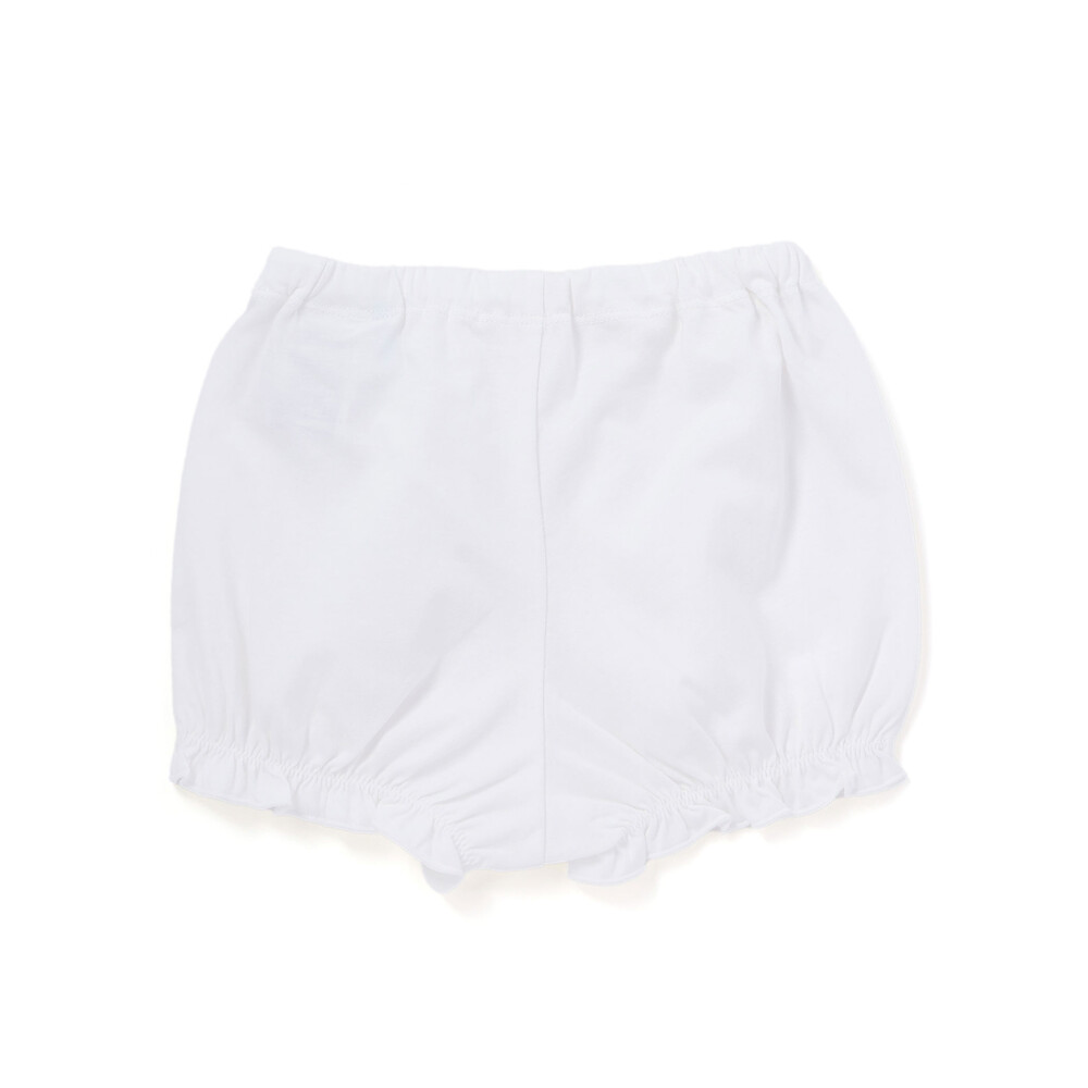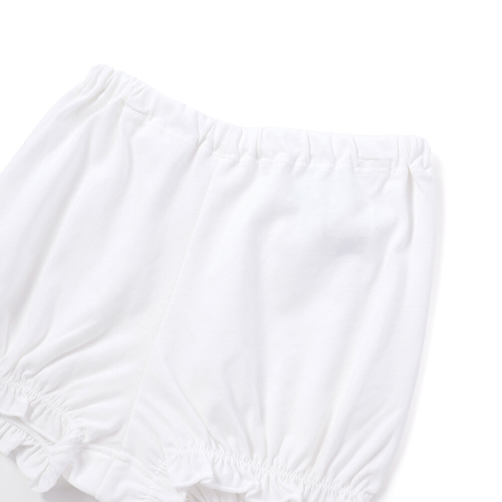 透かし模様が美しい綿レースのワンピースに、同色のブルマを組み合わせた、主役級の可愛らしさを放つ2点セットです。
