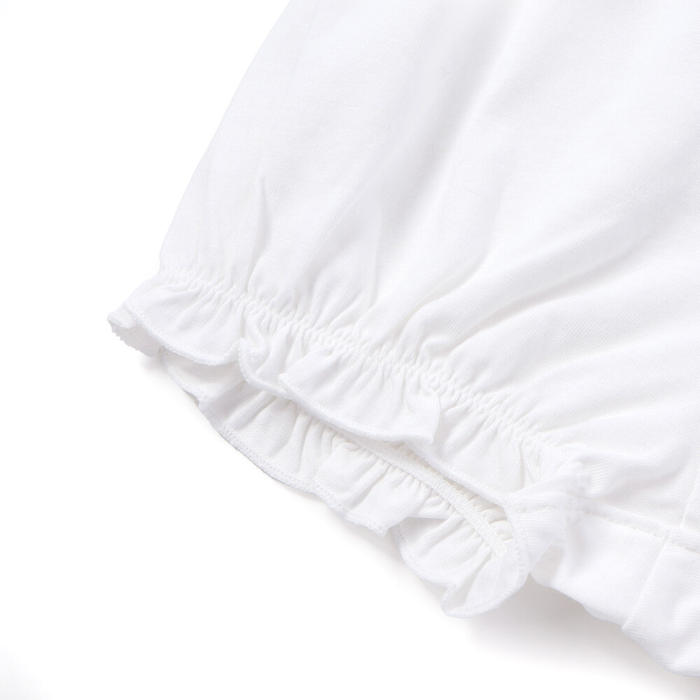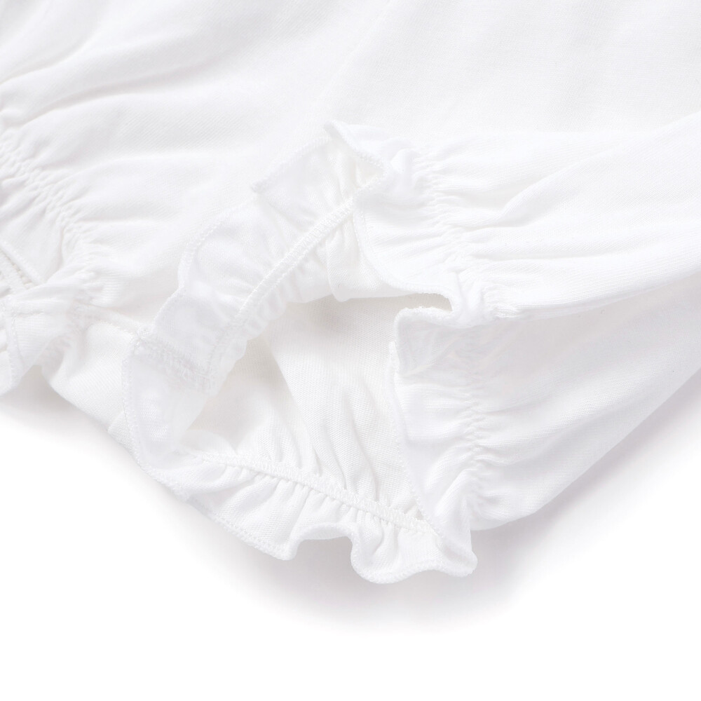 ブルマのウエストと足口は総ゴム仕様なので、赤ちゃんの成長に合わせて優しくフィットし、お着替えもラクラクです。