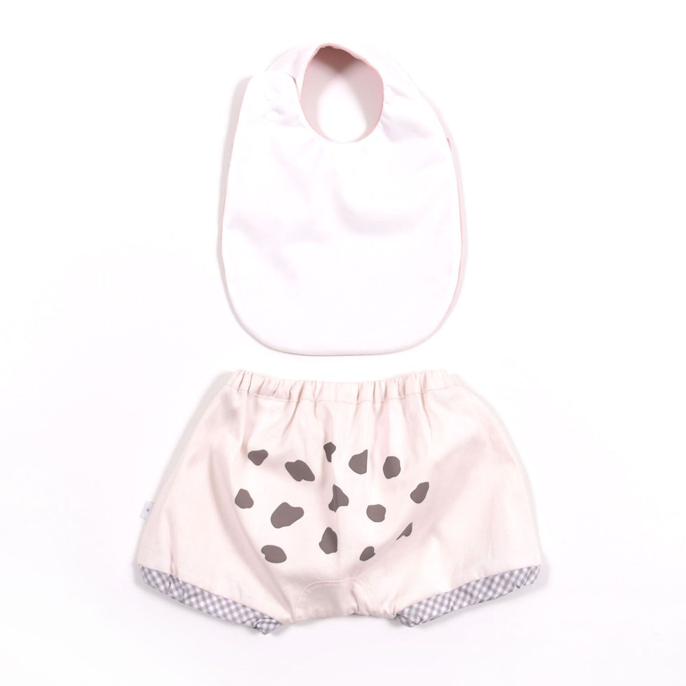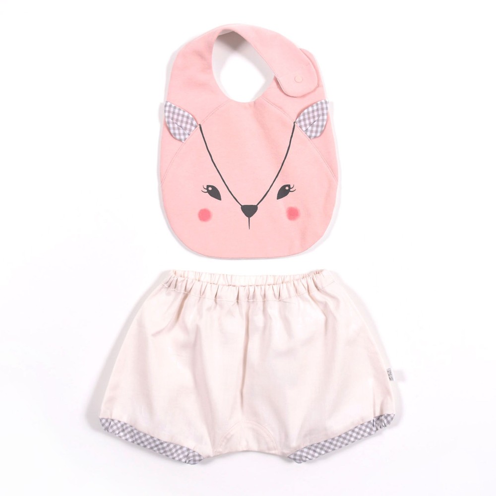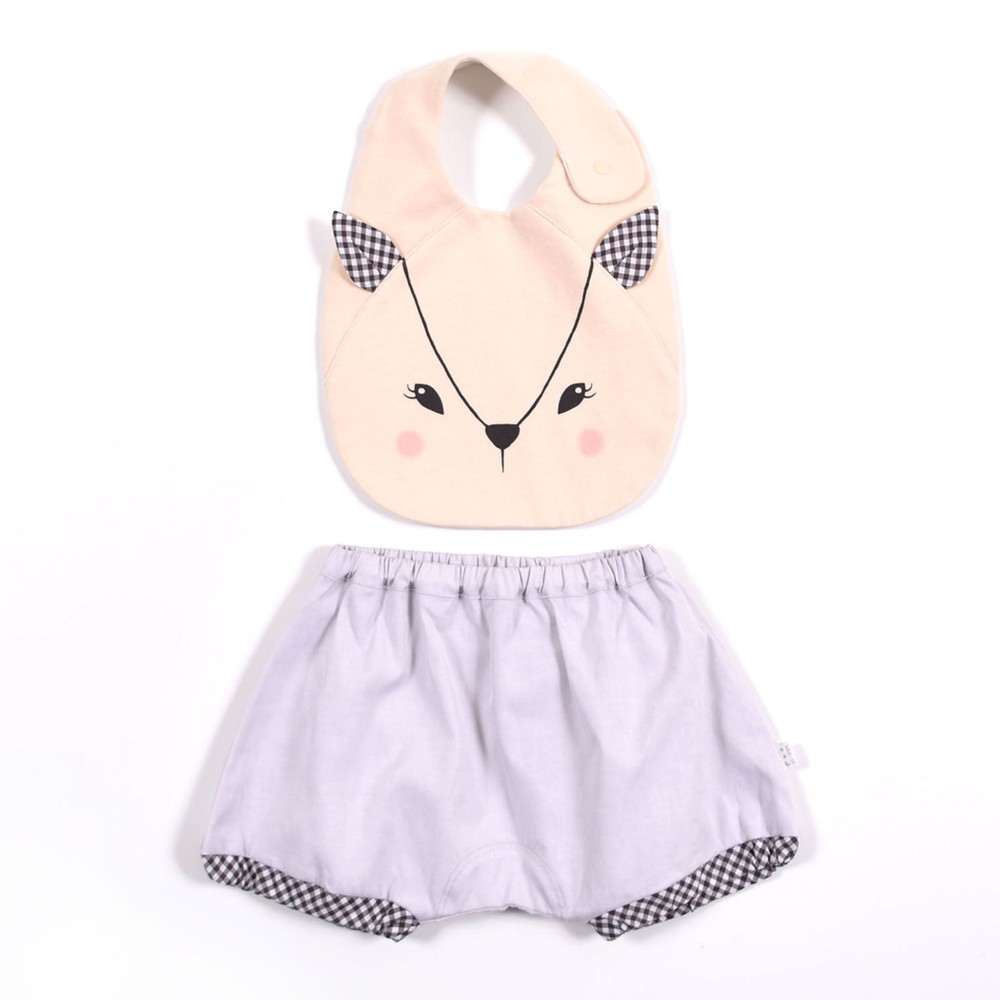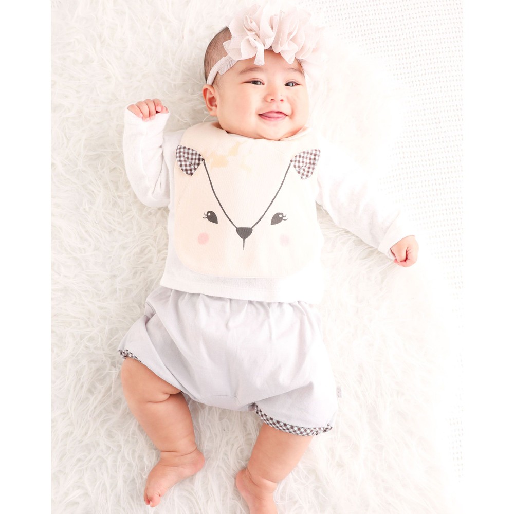 スタイにはバンビの顔のプリントが入っています。