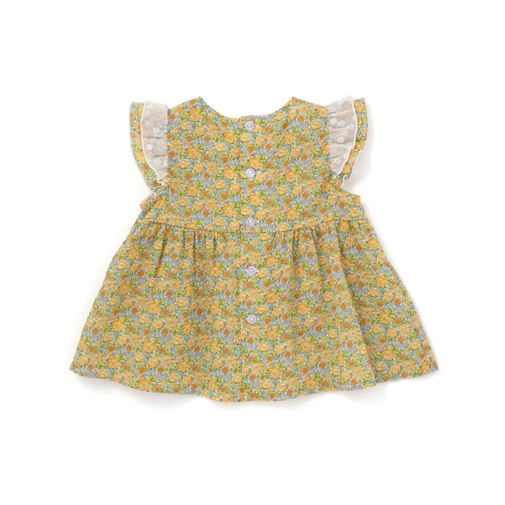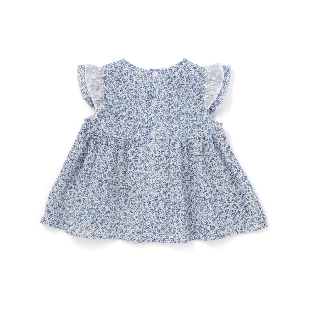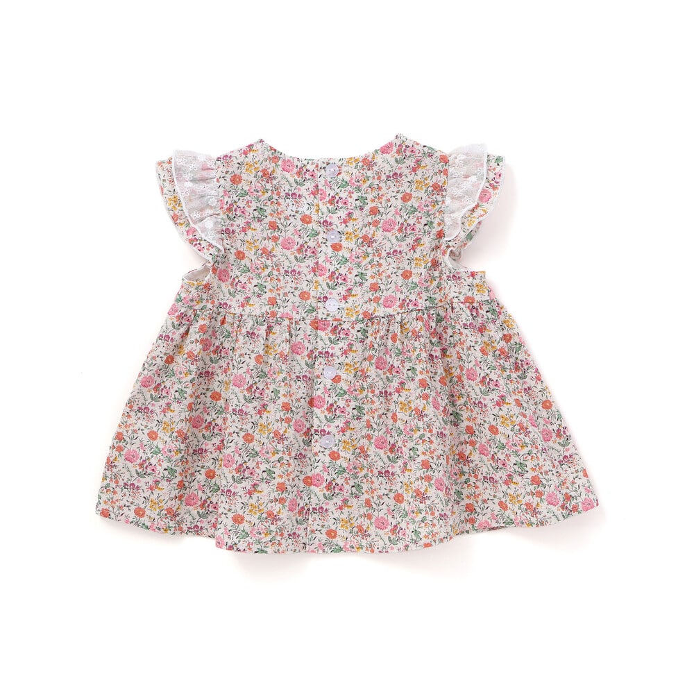リバティプリントの花柄が華やかな女の子用フリルチュニックです。