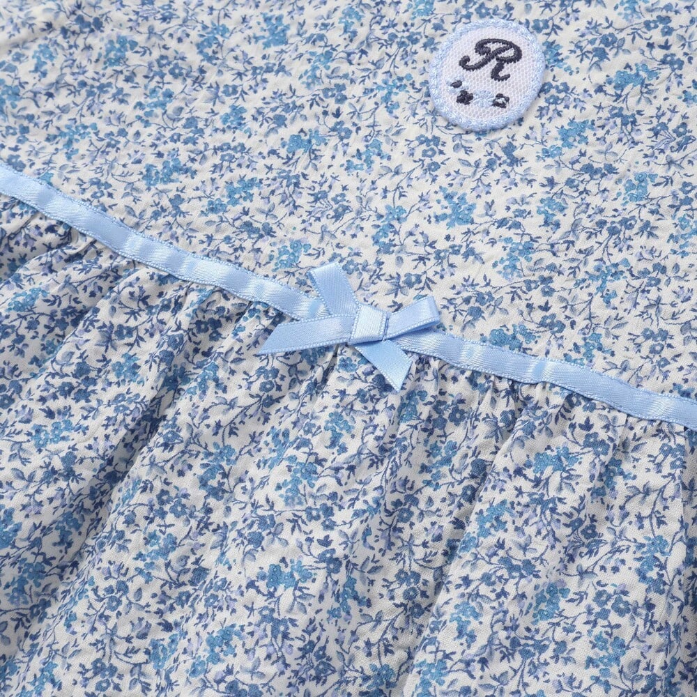 ウエストの切り替え部分のサテンリボンが、愛らしいアクセントになっています。