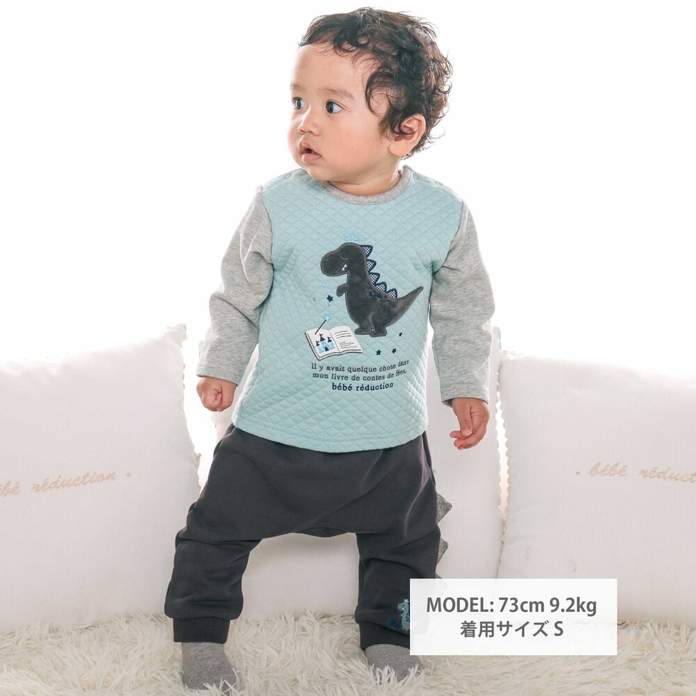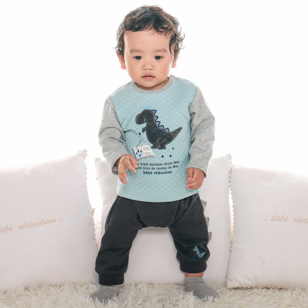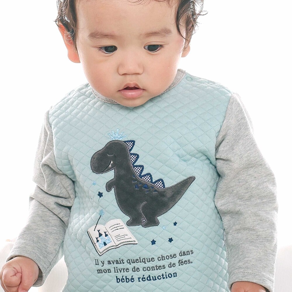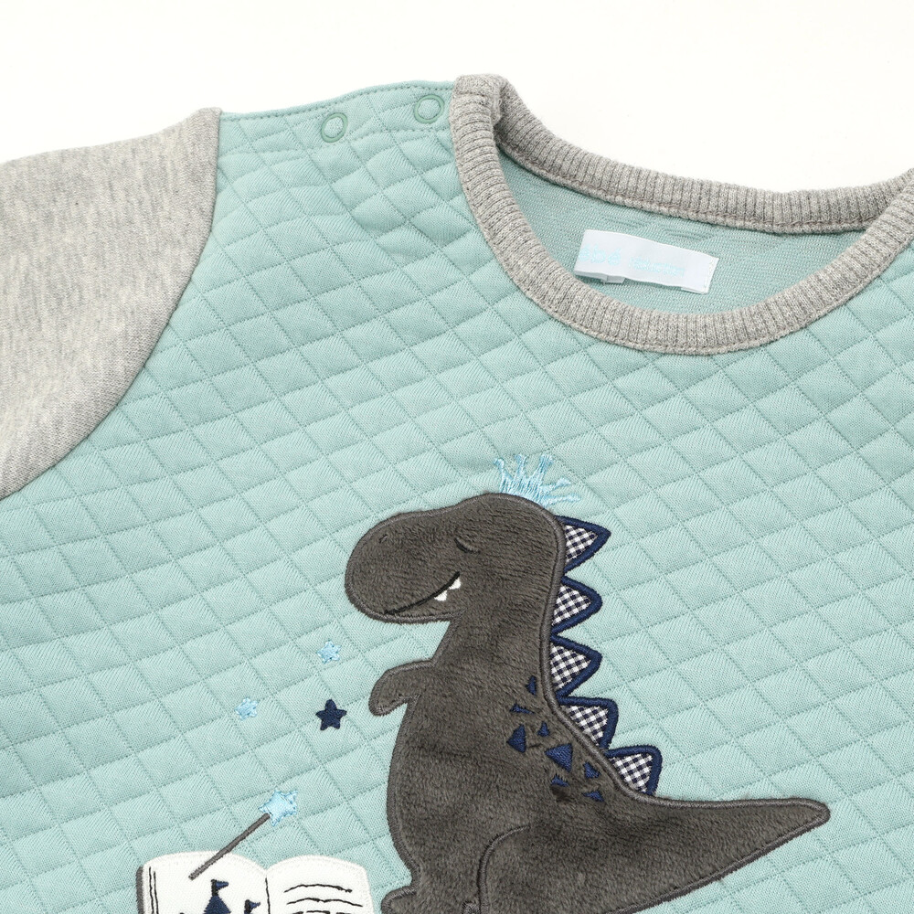 恐竜モチーフをあしらった、遊び心あふれるデザインが魅力的な男の子用長袖トレーナー。