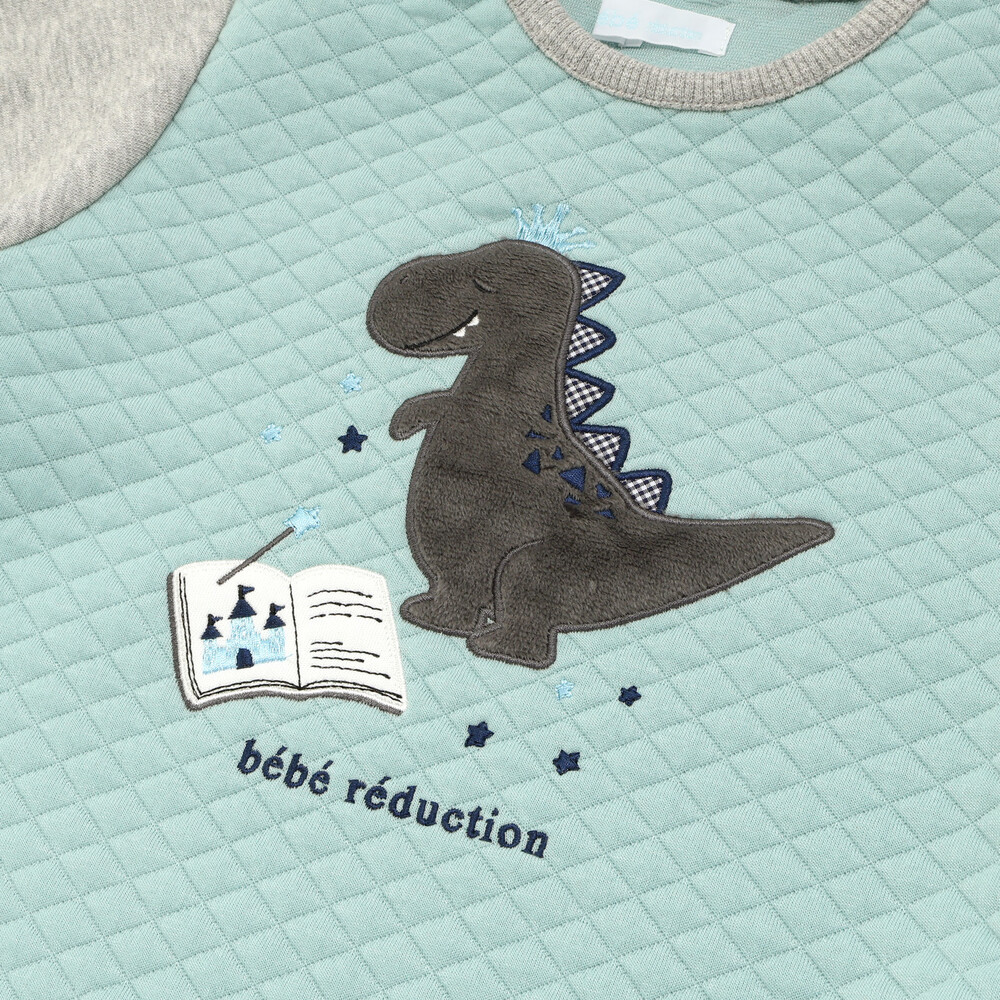 テーマであるおとぎ話の世界から飛び出してきたような恐竜のパッチ刺しゅうが可愛らしいトレーナーです。