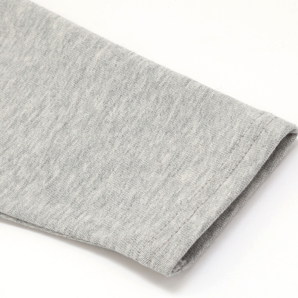 袖にはウラ毛素材、襟にはテレコ素材を使用しており、異なる素材の組み合わせがデザインに奥行きと表情を与えています。