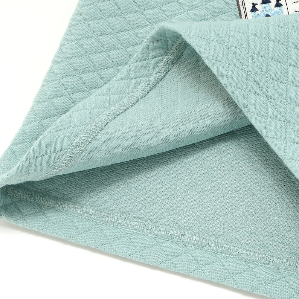 身生地に施した中綿キルト生地はふっくらと柔らかい手触りで、見た目にも暖かさを感じさせます。